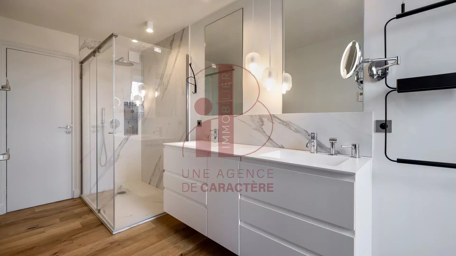 IB IMMOBILIER presents to you, in the heart of FONTAINEBLEAU, an EXCEPTIONAL APARTMENT with TERRACE on the top floor. This rare property on the Bellifontain market seduces with its generous volumes, its privileged location in the heart of the city and its very high-level services. Located on the top floor of a recent luxury residence with ELEVATOR, this 152 m² APARTMENT offers a remarkable living environment, at once BRIGHT, FUNCTIONAL and elegant. Upon entering, a spacious hall with a cloakroom and guest toilet. The heart of the apartment is centered around a light-filled 55 m² living room, opening onto a balcony and a 63 m² planted terrace, a true outdoor living space. The 17 m² fully equipped kitchen combines comfort and functionality, with an adjoining utility room. The separate sleeping area consists of a master suite with a dressing room, double sink bathroom, and separate toilet. A second bedroom also has its own bathroom, custom-made storage, and a built-in office space. A separate office and laundry room complete the ensemble. The apartment offers a double exposure, high ceilings, constant light and a fluid layout, thought out down to the smallest details. This property offers three private underground parking spaces, including one space equipped with an electric charging station. A property rarely available for sale, in new condition, never lived in, located in a quiet and central environment. An exceptional property, for an exceptional life, to visit without delay! For any information contact Carole: 06 79 94 74 61 / 01 60 74 56 40 - carole@ibimmobilier.fr