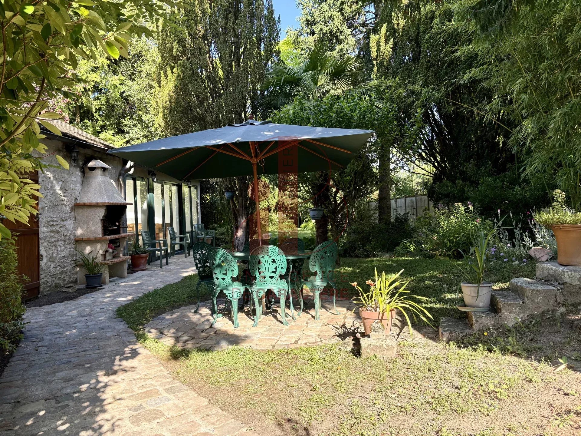 IB IMMOBILIER presents to you in ACHÈRES-LA-FORÊT, an authentic stone farmhouse in the heart of the old village, enjoying a unique atmosphere just 10 minutes from Milly-la-Forêt. Located in the historic center of Achères-la-Forêt, this stone farmhouse captivates with its authenticity, generous proportions, and bucolic garden. A truly characterful house, ideal for those who love places steeped in history and tranquility. It is composed on the ground floor of an entrance with cloakroom, a dining room opening onto a warm living room of 45 m² with a magnificent stone fireplace, a dining kitchen of 15 m², a shower room with toilet, and a summer kitchen with living room equipped with reversible air conditioning enjoying access to the garden and the terrace, an office space, and a veranda of 15 m² bright thanks to its openings onto the garden. A wide oak staircase leads upstairs, a landing with a bookcase gives access to three beautiful bedrooms of 13 m², a bathroom with toilet, and a master suite of 16 m² comprising a sleeping area, dressing room and bathroom with toilet. Outside : The wooded and carefully landscaped garden offers a peaceful and intimate setting. A charming pond lined with stone benches invites relaxation and contemplation. Technical note: in perfect condition, double-glazed wooden frames, oil-fired central heating, reversible air conditioning in the studio, individual sanitation compliant, A rare property, combining old world charm and modern comfort, where you just have to put down your suitcases, to discover without delay!!! Your contacts Ludivine POURON 06.31.89.65.10 / ludivine@ibimmobilier.fr & Claudia VALLIER 06.98.17.90.24 / claudia@ibimmobilier.fr