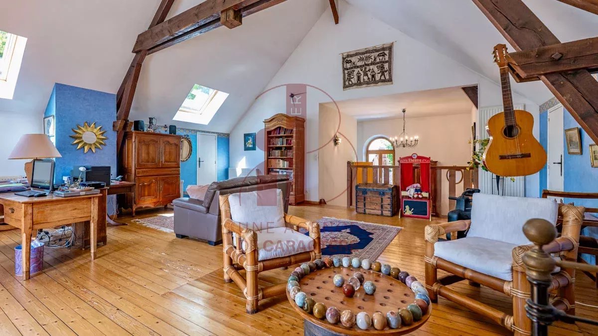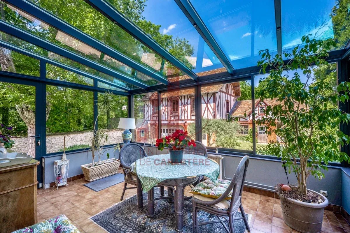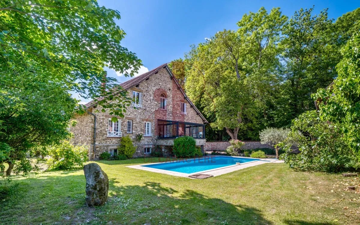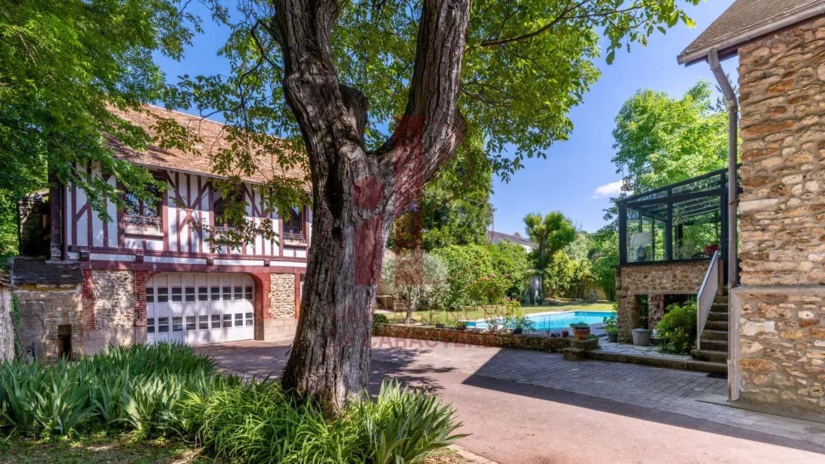 IB IMMOBILIER presents this magnificent property on the banks of the Seine, embodying the unique charm of the "Affolantes" houses. A typically Belle Époque architectural style, whose exuberant architecture was very fashionable in the late 19th and early 20th centuries, recognizable by its red half-timbering, exposed stone facades, and decorative brickwork erected on the banks of the Seine. Located in the center of its park, the property consists of a main house of 246 m² Carrez law and 260 m² of living space , built on a semi-buried basement, as well as several outbuildings in the same architectural style. The whole forms a real small hamlet, built around a central swimming pool. THE MAIN HOUSE benefits from generous volumes and beautiful natural light. From the very first steps, the eye is drawn to a sumptuous living room of over 50 m², enhanced by the 4 meter high ceiling, a fireplace with insert, and large bay windows opening onto the Seine . The whole offers an exceptional living environment, bathed in light and elegance. The ground floor also accommodates a perfectly equipped kitchen of 13.2 m² with dining area on a terracotta floor , a large veranda opening onto the hamlet and the swimming pool area, as well as three beautiful bedrooms, a bathroom with whirlpool bath, and a shower room. The upper floor includes two additional bedrooms , a shower room , an office space and an impressive cathedral room of 51.8 m² with 6.5 m high ceilings ! offering multiple layout possibilities (games room, living room, workshop, etc.). Finally, a vast 150 m² basement houses a laundry room, a boiler room, a wine cellar, and several storage spaces. A functional and complete level, ideal for meeting the needs of an organized family life. For the OUTBUILDINGS: A garage, topped with a floor with a new concrete slab, offering a beautiful volume of approximately 70 m², with good ceiling height, fully convertible according to needs, a multifunctional outbuilding , and a dovecote , in the same architectural style as the main house. The 4,069 m² garden forms a fully enclosed park, combining relaxation areas, a vegetable garden, and a wide expanse of lawn. A lush, carefully maintained setting, offering a peaceful and harmonious living environment. Between nature and architecture, this property on the banks of the Seine offers a privileged living environment, conducive to beautiful projects, inspiration and tranquility. It combines old-world charm , generous volumes , and noble materials. Ideal for families and artists! Technical note: Double-glazed frames, gas heating, property tax: 3,700? Your contacts Marielle DELLOYE BALOUZAT 06.08.47.82.46 / marielle@ibimmobilier.fr and Carole DAVID 06.79.94.74.61 / carole@ibimmobilier.fr