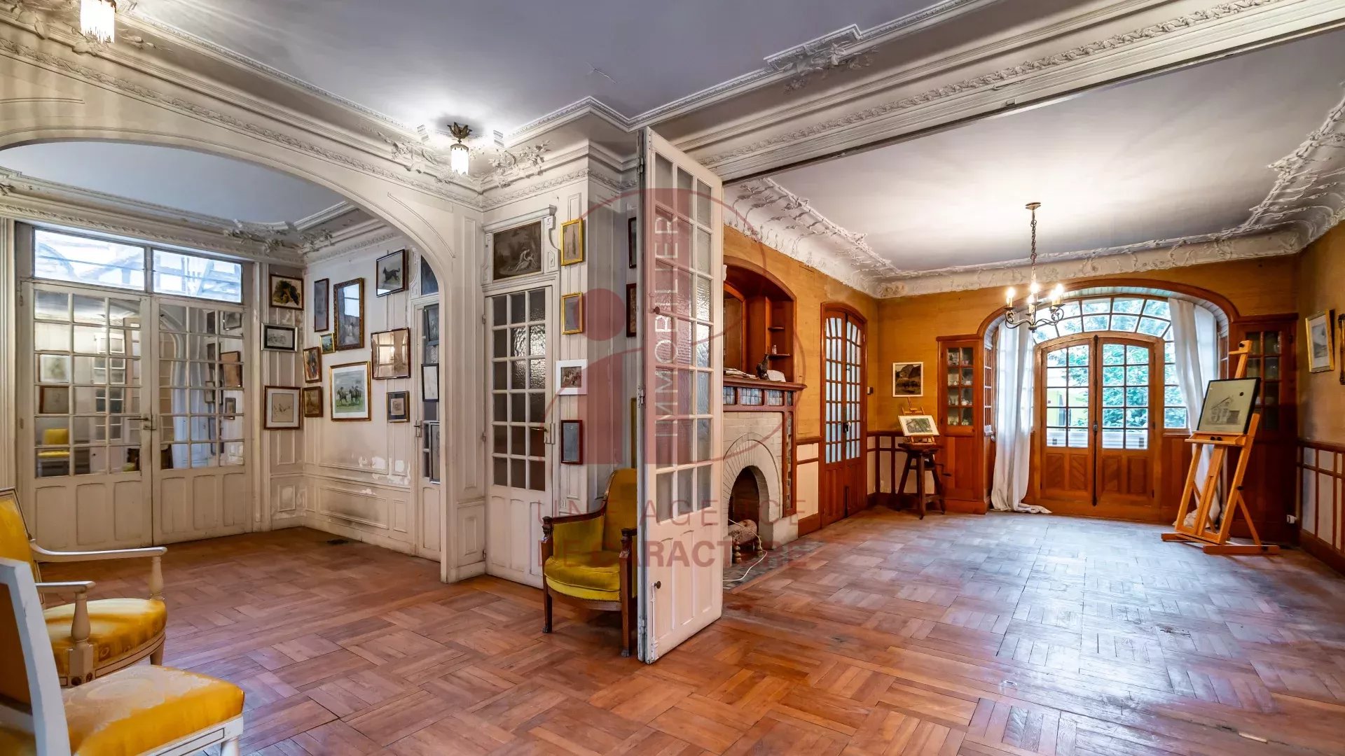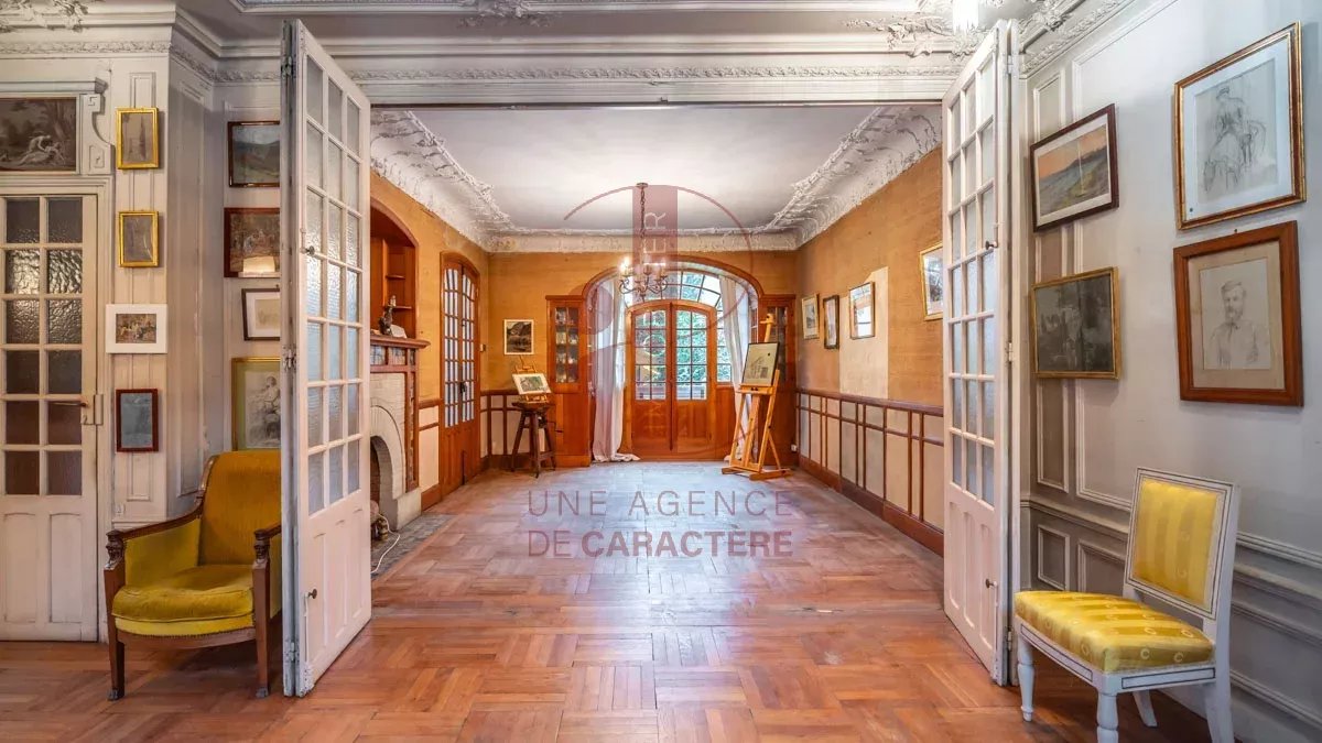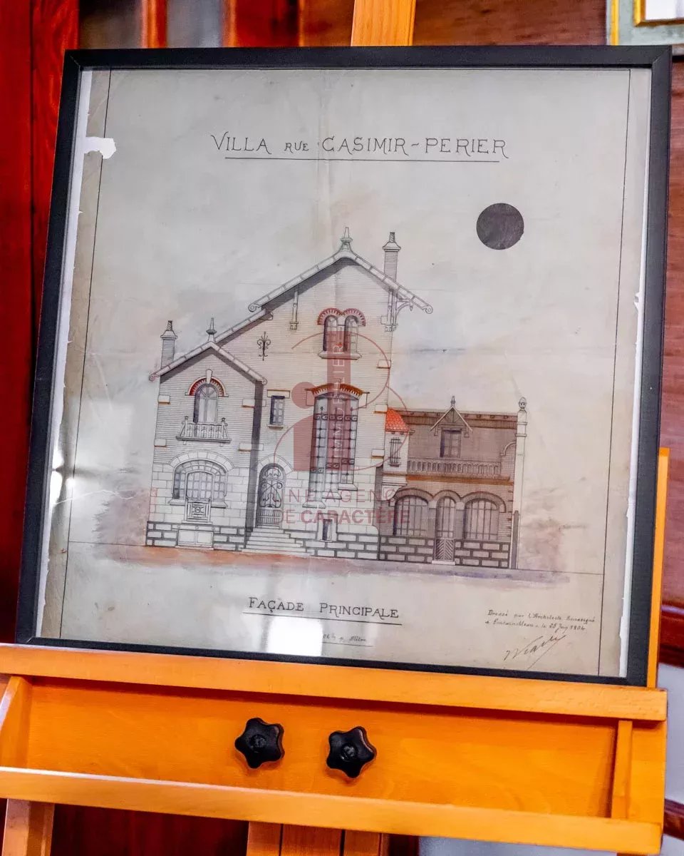 Ideally located in FONTAINEBLEAU (77300), in the heart of a residential environment of architectural quality. Nestled near the city center, schools and the Fontainebleau forest, this residence of 302.95 m² of living space, classified "Remarkable", offers a rare opportunity to live in a setting steeped in history and charm. Built by the famous architect Jules VIATTE at the beginning of the 20th century, who himself lived there, also recognized as a painter and engraver, this property has carefully preserved all the characteristic elements of Art Nouveau. As soon as you enter, the atmosphere of yesteryear envelops you with a sumptuous stained glass window representing an orange tree. The property's living spaces include MAGNIFICENT RECEPTION ROOMS, bathed in natural light, adorned with moldings and cornices that add a touch of refinement and timeless elegance. A LIVING ROOM signed by the painter Paul TAVERNIER, a DINING ROOM and a WORKSHOP with its skylight and bay window offer a diversity of atmosphere. A very beautiful OFFICE SPACE with its fireplace and its mezzanine giving access to the roof terrace of 36.83 m² as well as a kitchen. From the living room, open a door, go down the steps and you will discover a 30 m² space to be converted into a DINING KITCHEN. On the first floor, THREE BEDROOMS, one with access to the roof terrace and two bathrooms with WC. On the second floor, TWO BEDROOMS, a bathroom with WC and an attic. The basement, a true functional extension, includes a laundry room, a toilet, a kitchen, a boiler room, a cellar, an office and two rooms to be defined according to your needs and preferences. This unique property offers an opportunity to merge the charm of history with the comfort of urban living, just a stone's throw from the heart of the city. A little history note : Architect and painter Jules Viatte, disciple of Eugène Grasset, settled in Fontainebleau in the late 1890s, taking on significant construction projects during a period of architectural boom in the city . He built several properties in Fontainebleau, including the Pierrotet house, built for the Javal family in 1901. Classified as a remarkable building, this work of Art Nouveau illustrates the style dear to him. Technical notes: renovation work to be planned, single-glazed wooden frames, forced-air gas heating with hatches in the floor. This PROPERTY offers a whole ART OF LIVING in an area sought after for its elegance, its proximity to schools, the heart of the shopping city and the forest. Your contact Marielle DELLOYE BALOUZAT: 06 08 47 82 46/01.60.74.56.40 - marielle@ibimmobilier.fr