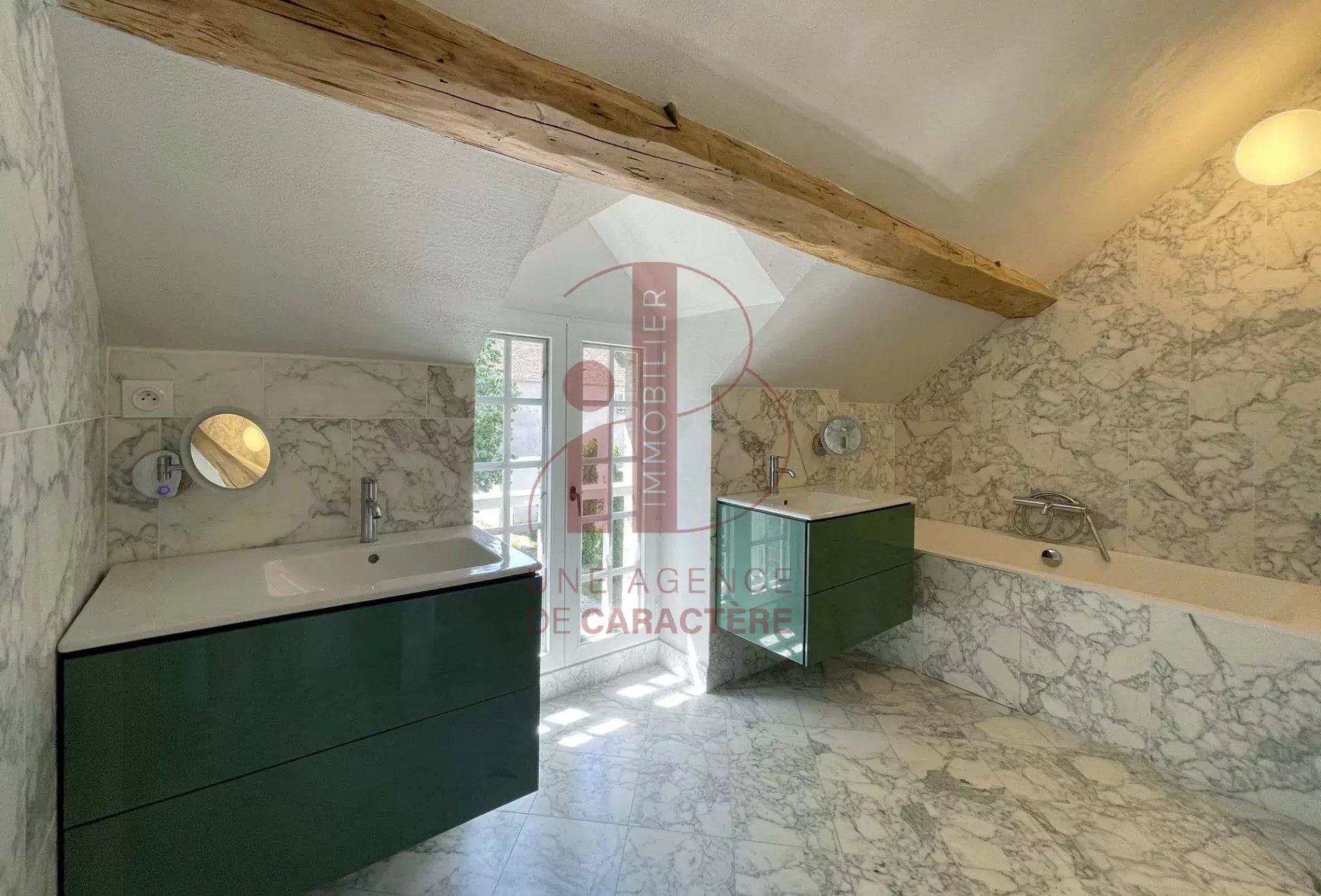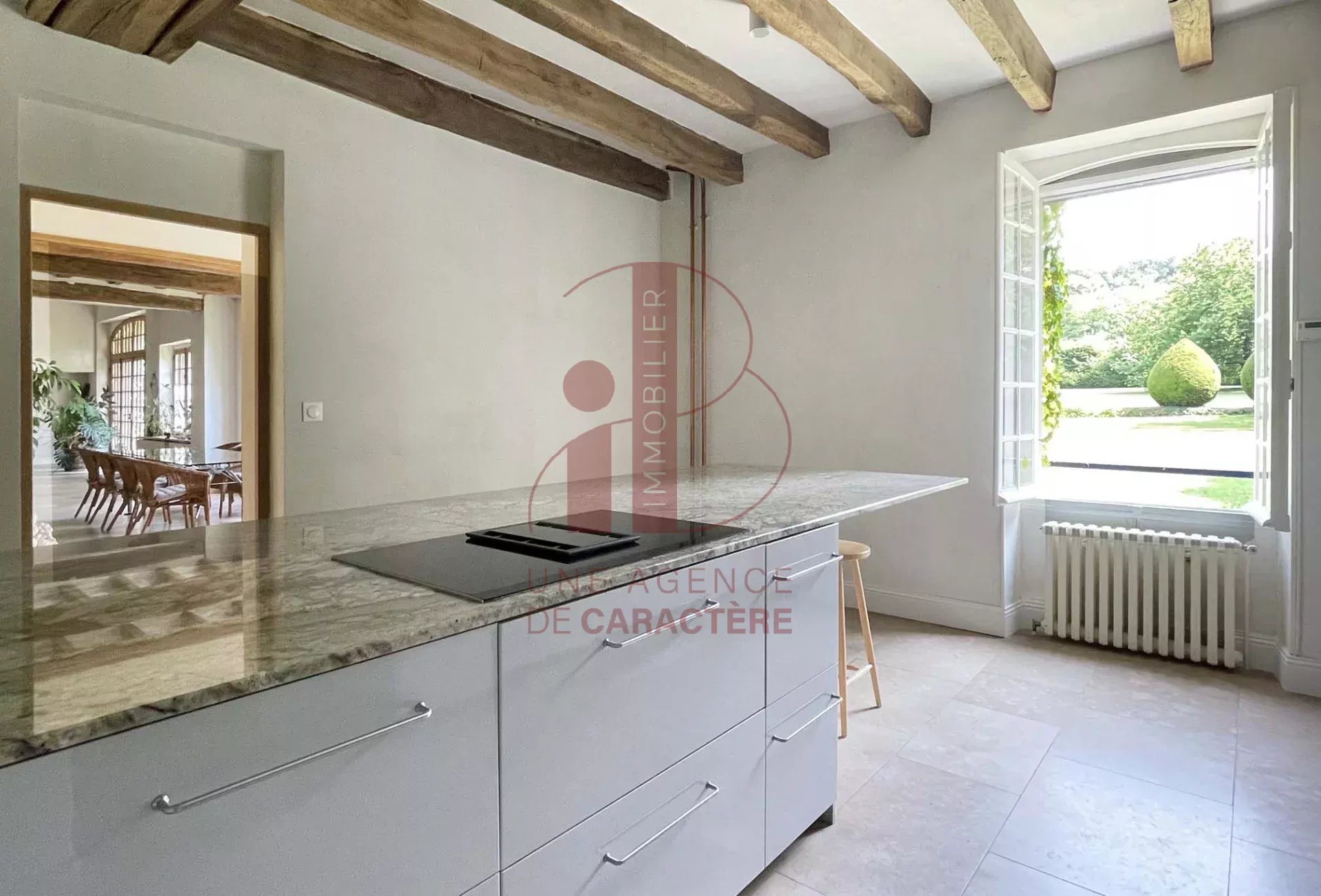 IB IMMOBILIER presents this MAGNIFICENT 1880 LONGERE, entirely renovated by a couple of minimalist ARCHITECTS, located in the heart of a quiet and preserved VILLAGE OF CHARACTER, 20 minutes from Fontainebleau and 1 hour 20 minutes from Paris. If you like the REAL COUNTRYSIDE, village life, nature, you will be surrounded by forests, fields, meadows, and will discover the LUNAIN VALLEY; In the heart of this environment, this 400 m² LONGERE, entirely facing south and the garden, offers a spectacular and bright 80 m² living room. You will find six bedrooms with five bathrooms, a 53 m² master suite accessible by a separate staircase, a billiard room on the mezzanine, a "chalet" bedroom for children and a beautiful wine cellar for wine lovers.... A 4,420 m² NATURAL GARDEN is home to around thirty trees, including a cherry tree and a magnificent lime tree, where it's a pleasure to relax on a deckchair... A 176m² BARN connected to water and electricity, ideal for a GUEST HOUSE or an ARTIST'S STUDIO. Technical note: compliant sanitation, quality insulation, plumbing and electricity completely redone. ELEGANT PROPERTY, A HAVEN OF PEACE IN THE HEART OF PRESERVED NATURE, IDEAL FOR WELCOME TO FAMILY AND FRIENDS. Your contact: Guillaume Delloye - 06.76.22.03.24/01.60.74.56.40 - guillaume@ibimmobilier.fr