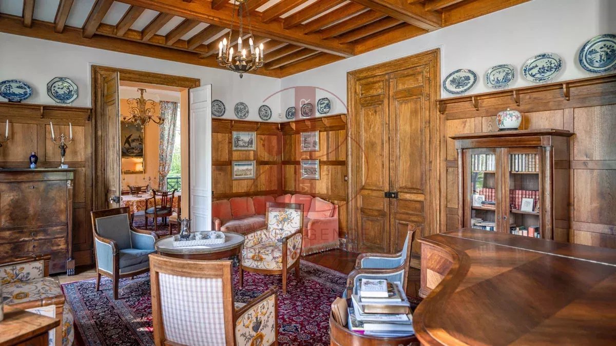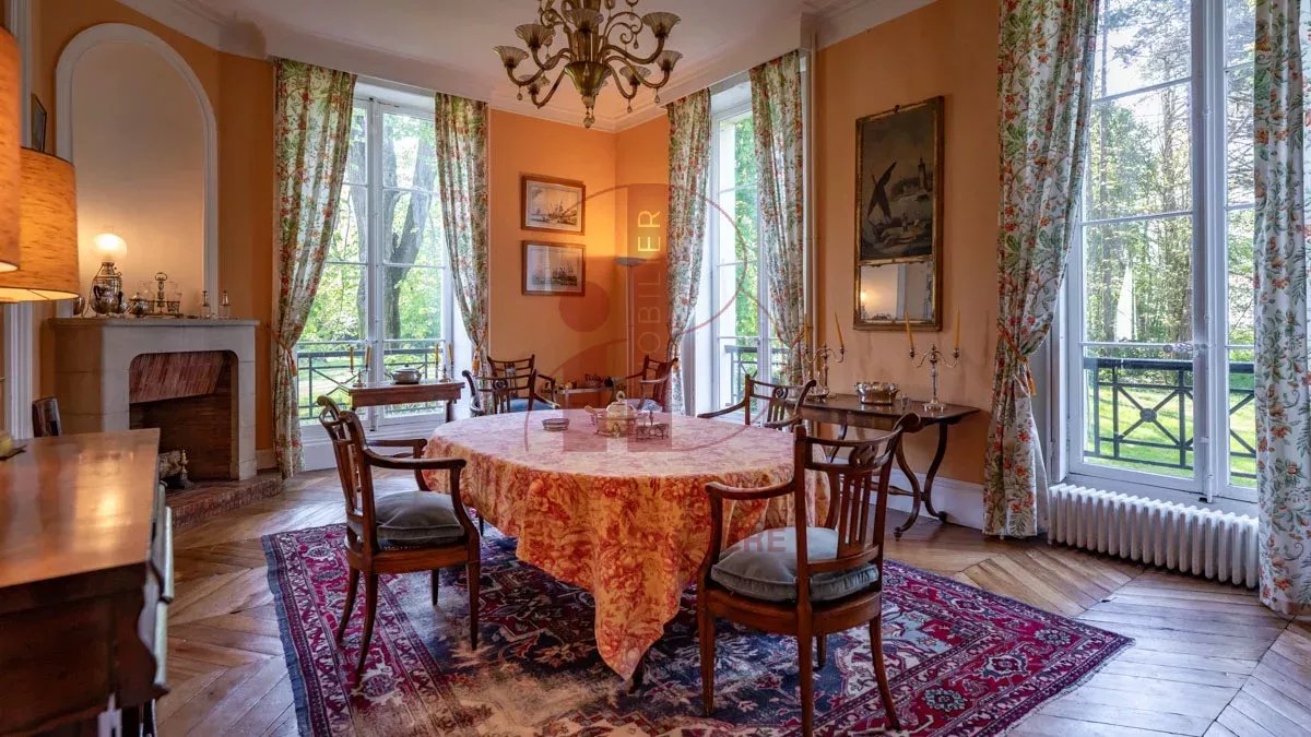 IN THE COUNTRY OF FONTAINEBLEAU - A REAL COUNTRYSIDE 30 MINUTES FROM FONTAINEBLEAU! IB Immobilier presents this ESTATE with DIRECTORY STYLE MANSION and its 12 HECTARES PARK, a place steeped in history, protected from view, which combines charm, elegance and authenticity. Between FOREST and COUNTRYSIDE? Surrounded by several estates far from each other, within a 12-hectare wooded park, this CHARACTER ESTATE consists of a 400 m² MASTER HOUSE, TWO GUEST HOUSES, OUTBUILDINGS and outdoor facilities conducive to relaxation and NATURE. The MAISON DE MAITRE is located at the end of a superb bridleway lined with century-old trees, leading to a pond where its facade, reminiscent of a Colonial House, is reflected. On the ground floor, a 25 m² marble ENTRANCE HALL leads to the reception rooms, a LARGE 51 m² LIVING ROOM with wood paneling and fireplace, a 28 m² DINING ROOM bathed in light, a DINING KITCHEN with a view of the PARK, an OFFICE or BEDROOM, and a guest toilet. Access the upper floor via a beautiful staircase, offering FOUR BEDROOMS, including a 28 m² MASTER SUITE with marble fireplace, TWO BEDROOMS with adjoining bathrooms, an OFFICE or BEDROOM, a separate bathroom and a separate toilet. On the second floor, the landing leads to SIX additional BEDROOMS, TWO BATHROOMS, a linen room and plenty of storage space. The spacious basement includes an old kitchen, a boiler room, and a magnificent HUNTING ROOM, a testament to the French art of living. This generously proportioned residence captivates with its warm atmosphere, its calm and its preserved character: high ceilings, woodwork, old fireplaces, herringbone or pitch pine parquet floors? Each room has retained its original spirit. The 160 m² OUTBUILDINGS house two independent dwellings, perfect for accommodating guests, staff or for considering a rental project - One of the houses is currently rented - The 12-HECTARE PARK, a true haven of peace, surrounds the house with VAST MEADOWS where sheep and their 3 lambs graze peacefully, a ROSE GARDEN, an ORCHARD and VEGETABLE GARDEN AREA with a large greenhouse, a well, an above-ground swimming pool, a PRIVATE WOODS? A barn and a farm nearby. You will also find a building with a large garage, two old stables and a tennis court - to be renovated - Technical note: De Dietrich oil boiler, septic tank sanitation, roofs with some infiltrations on the main roof, wooden and PVC frames, single and double glazing, - ensemble with preserved charm requiring refreshments to restore all its splendor - A rare location, offering multiple development possibilities for a family residence, a guest house or an event project in the heart of a preserved natural environment. Your contact: Marielle DELLOYE BALOUZAT ? 06 08 47 82 46 | 01 60 74 56 40 - marielle@ibimmobilier.fr