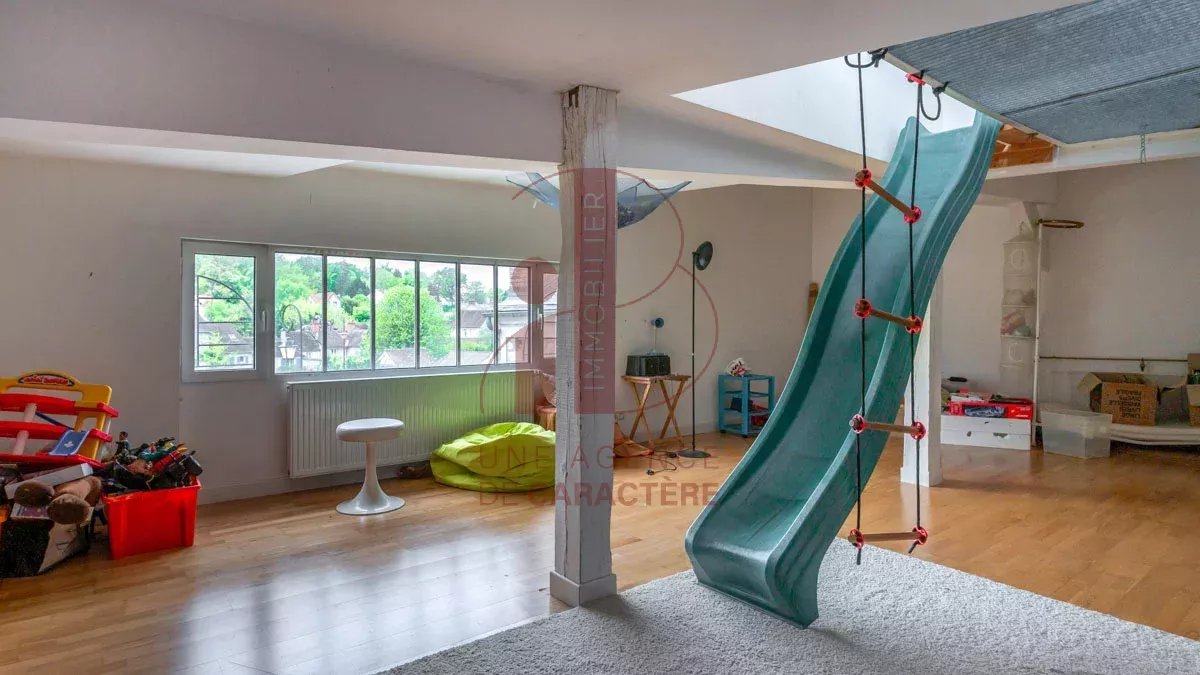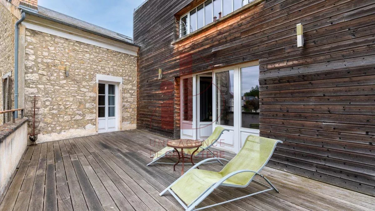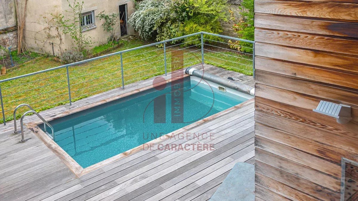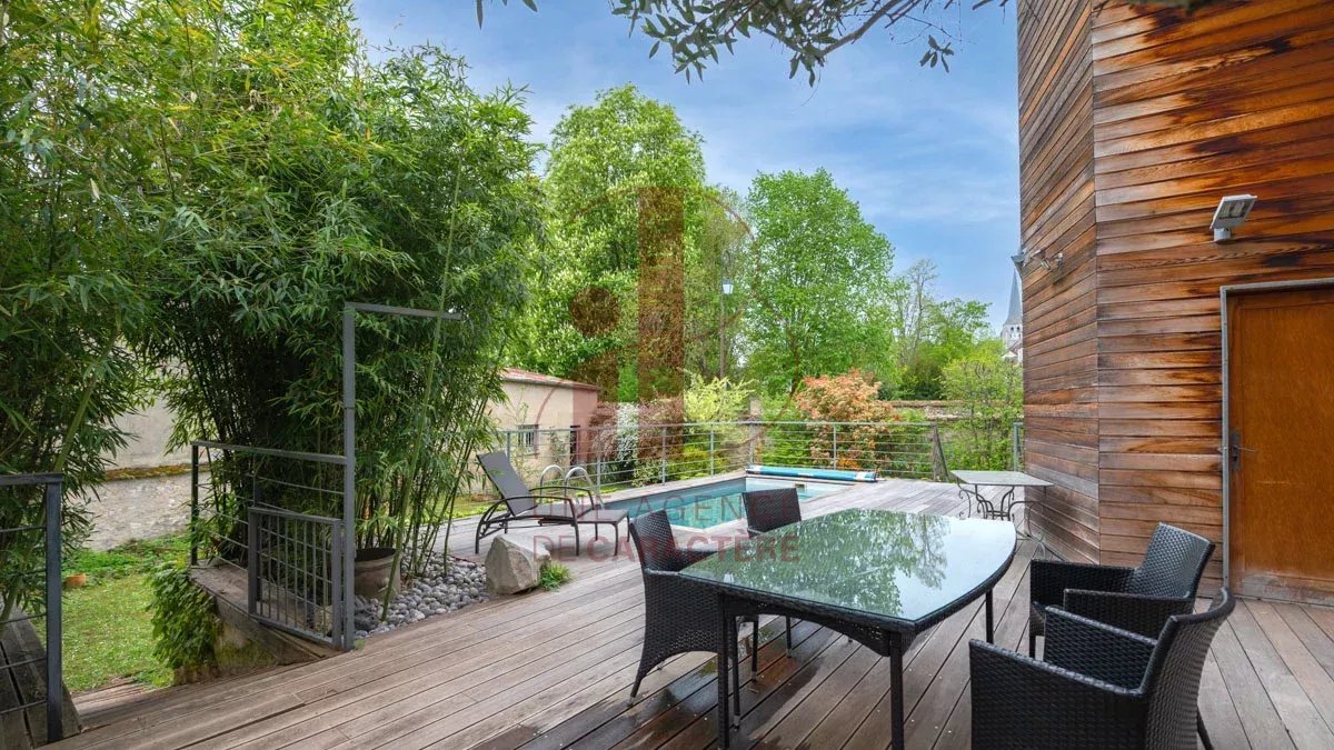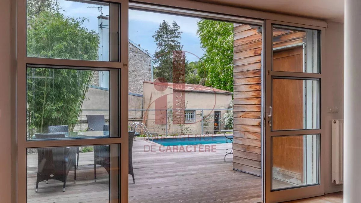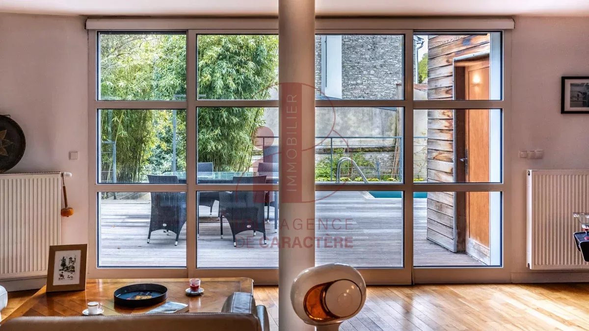 SAINT PIERRE LES NEMOURS? SOUTH of FONTAINEBLEAU and adjacent to NEMOURS? in the HEART of AN ARCHITECTURAL QUALITY PLACE, near the LOING CANAL, 10 minutes walk from NEMOURS STATION and 20 minutes from FONTAINEBLEAU. This CHARMING PROPERTY of 423 m² is made up of a BOURGEOISE HOUSE on the street with a WOODEN CLADDING EXTENSION on the garden side, extending onto a TERRACE TREE with bamboo and an olive tree with a PLEASURE POOL of 4x2.5m heated by a heat pump. heat. This house has a "little vacation feel"... Access via a large entrance with cloakroom serving a SPACIOUS LIVING ROOM of approximately 55m² with bay windows opening onto the terrace, a LARGE, WELL-EQUIPPED DINING KITCHEN of approximately 33m² , a very practical OFFICE, an OFFICE space, a LAYERED BEDROOM 12m² pedestal with its bathroom and a guest toilet in an old telephone booth. TO HAVE ! On the first floor, via a contemporary and sculptural staircase, access to a landing serving THREE BEDROOMS and a bathroom with bathtub, shower and toilet, a LARGE MASTER BEDROOM of approximately 58m² with dressing room and a terrace with superb views over the roofs , the gardens and the church. On the second floor, a 34m² TV LIVING ROOM , a 12m² BEDROOM with BATHROOM, a GAMES ROOM with 45m² slide and a SPORTS ROOM with 18m² SAUNA . On the garden level, you will find a LARGE RECEPTION ROOM of 91m² ideal for receiving your guests, with a billiards table, kitchen area, a wine cellar for wine lovers and a storage room. SMALL INTIMIST GARDEN 660m² easy to maintain - Parking possible by gate on the street and garage 3*3 Technical note : Double-glazed aluminum and PVC frames, gas condensing boiler and heat pump for the swimming pool - DPE C - FAVORITE IB Immobilier for this SPACIOUS AND BRIGHT FAMILY PROPERTY where everyone will find their own space - the area is charming with the Loing canal nearby, between the Place de Nemours and its Moulin, the pretty Place de Saint Pierre with its church - Train station nearby - SHOPS on foot and WALKING every Wednesday and Saturday - choice of public or private schools - walk or bike ride following the Loing canal - Your contact Guillaume DELLOYE 01.60.74.56.40 / 06.76.22.03.24 - guillaume@ibimmobilier.fr -
