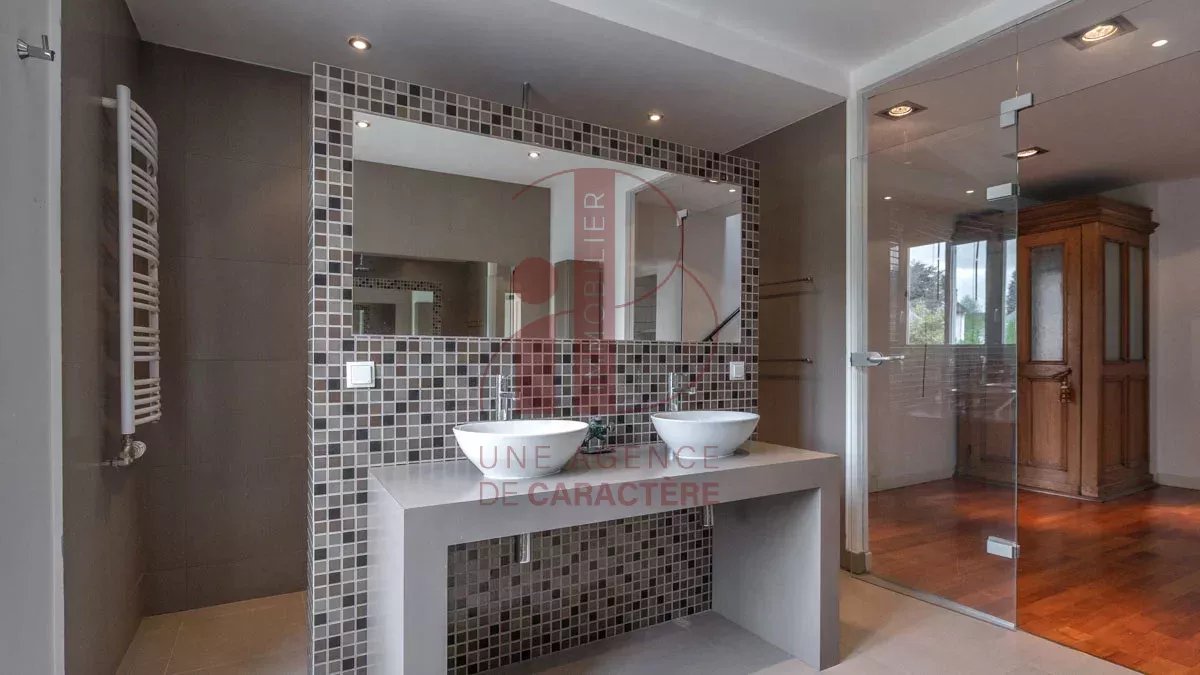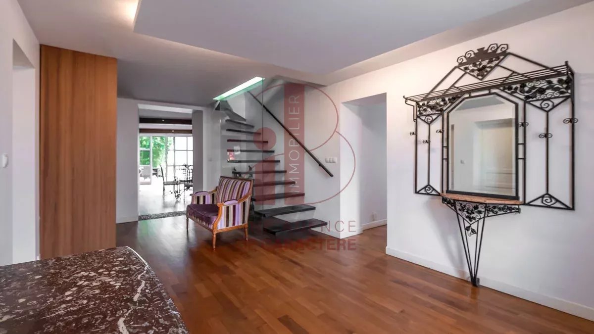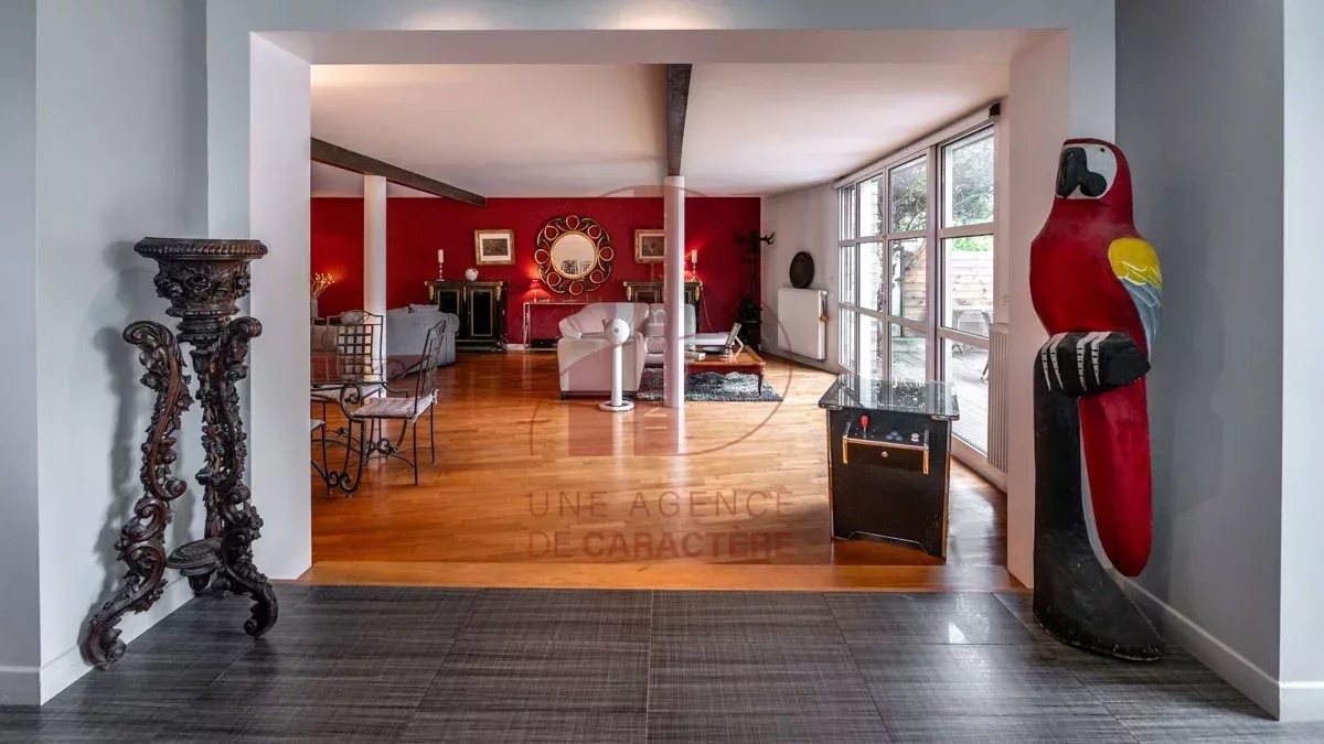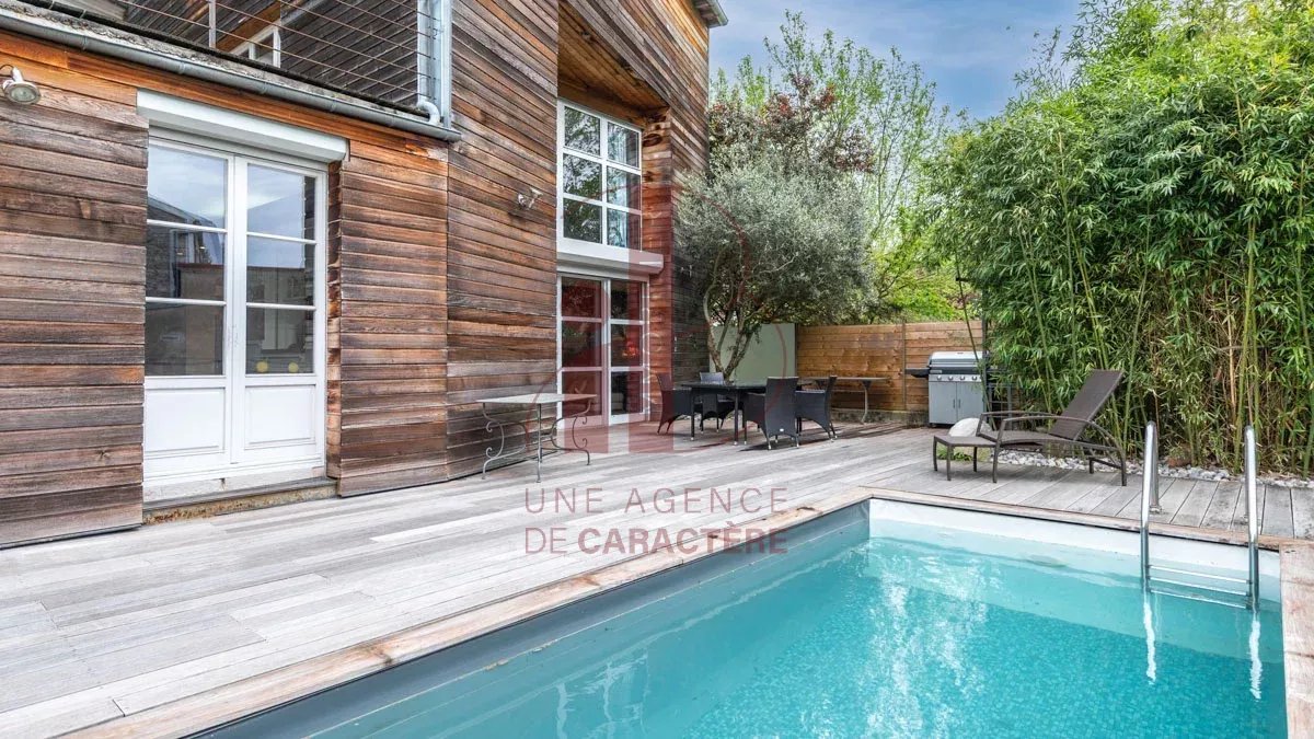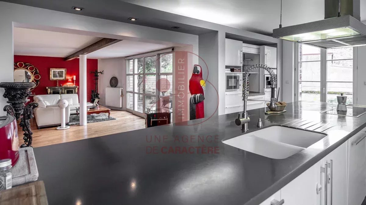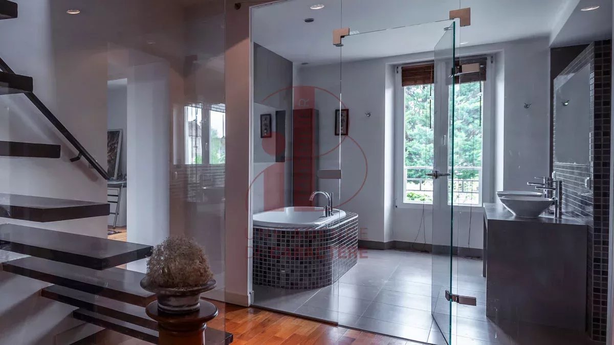 SAINT PIERRE LES NEMOURS? SOUTH of FONTAINEBLEAU and adjacent to NEMOURS? in the HEART of AN ARCHITECTURAL QUALITY PLACE, near the LOING CANAL, 10 minutes walk from NEMOURS STATION and 20 minutes from FONTAINEBLEAU. This CHARMING PROPERTY of 423 m² is made up of a BOURGEOISE HOUSE on the street with a WOODEN CLADDING EXTENSION on the garden side, extending onto a TERRACE TREE with bamboo and an olive tree with a PLEASURE POOL of 4x2.5m heated by a heat pump. heat. This house has a "little vacation feel"... Access via a large entrance with cloakroom serving a SPACIOUS LIVING ROOM of approximately 55m² with bay windows opening onto the terrace, a LARGE, WELL-EQUIPPED DINING KITCHEN of approximately 33m² , a very practical OFFICE, an OFFICE space, a LAYERED BEDROOM 12m² pedestal with its bathroom and a guest toilet in an old telephone booth. TO HAVE ! On the first floor, via a contemporary and sculptural staircase, access to a landing serving THREE BEDROOMS and a bathroom with bathtub, shower and toilet, a LARGE MASTER BEDROOM of approximately 58m² with dressing room and a terrace with superb views over the roofs , the gardens and the church. On the second floor, a 34m² TV LIVING ROOM , a 12m² BEDROOM with BATHROOM, a GAMES ROOM with 45m² slide and a SPORTS ROOM with 18m² SAUNA . On the garden level, you will find a LARGE RECEPTION ROOM of 91m² ideal for receiving your guests, with a billiards table, kitchen area, a wine cellar for wine lovers and a storage room. SMALL INTIMIST GARDEN 660m² easy to maintain - Parking possible by gate on the street and garage 3*3 Technical note : Double-glazed aluminum and PVC frames, gas condensing boiler and heat pump for the swimming pool - DPE C - FAVORITE IB Immobilier for this SPACIOUS AND BRIGHT FAMILY PROPERTY where everyone will find their own space - the area is charming with the Loing canal nearby, between the Place de Nemours and its Moulin, the pretty Place de Saint Pierre with its church - Train station nearby - SHOPS on foot and WALKING every Wednesday and Saturday - choice of public or private schools - walk or bike ride following the Loing canal - Your contact Guillaume DELLOYE 01.60.74.56.40 / 06.76.22.03.24 - guillaume@ibimmobilier.fr -