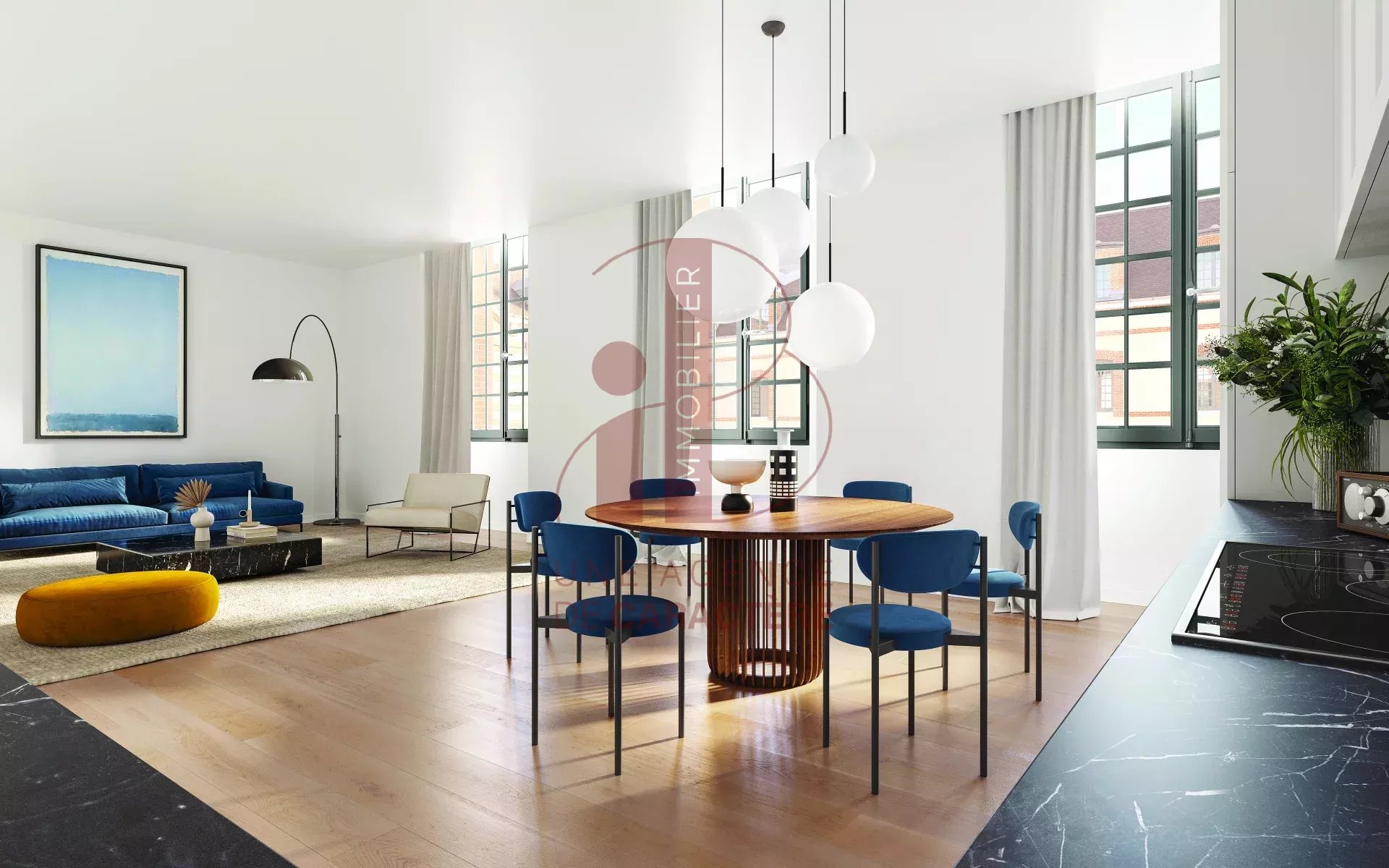 Situé au 2ᵉ étage, cet appartement séduit par la qualité de sa réhabilitation, ses belles parties communes, et les façades élégantes des deux bâtiments, harmonieusement déployés autour d’une cour paysagée.