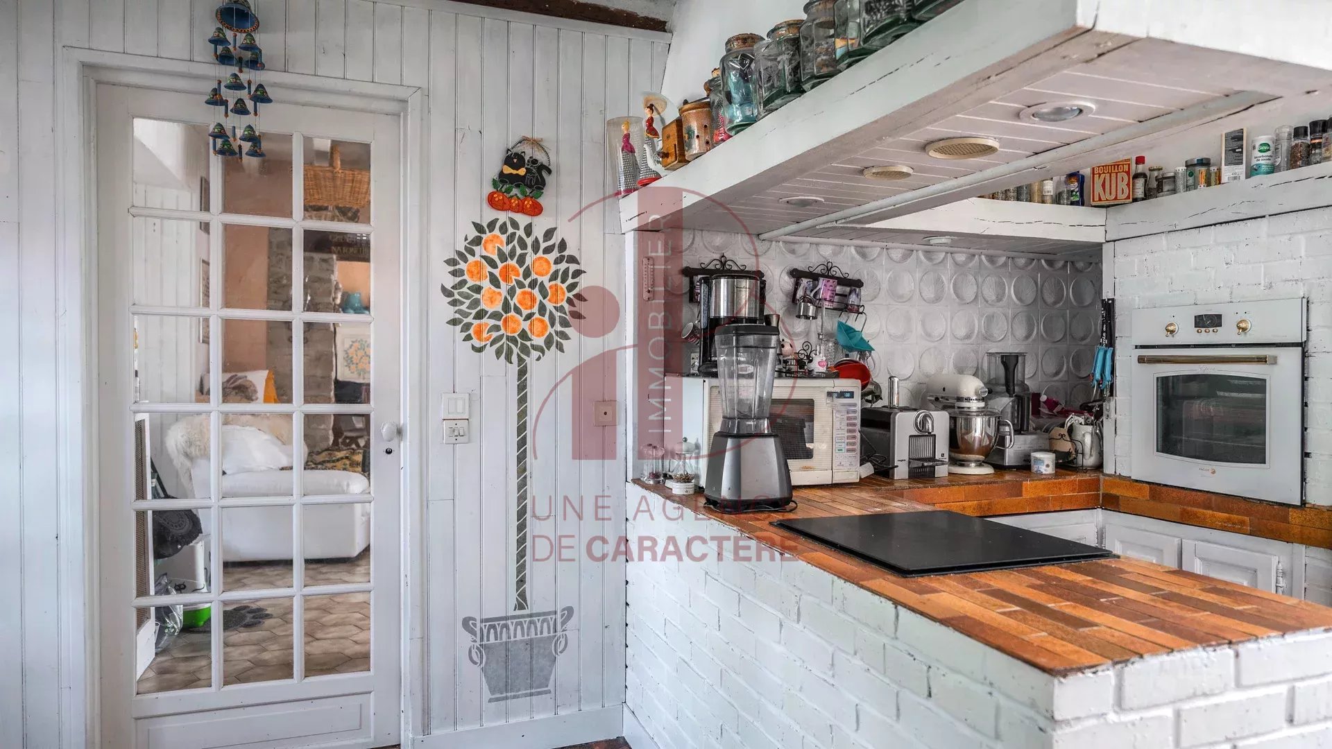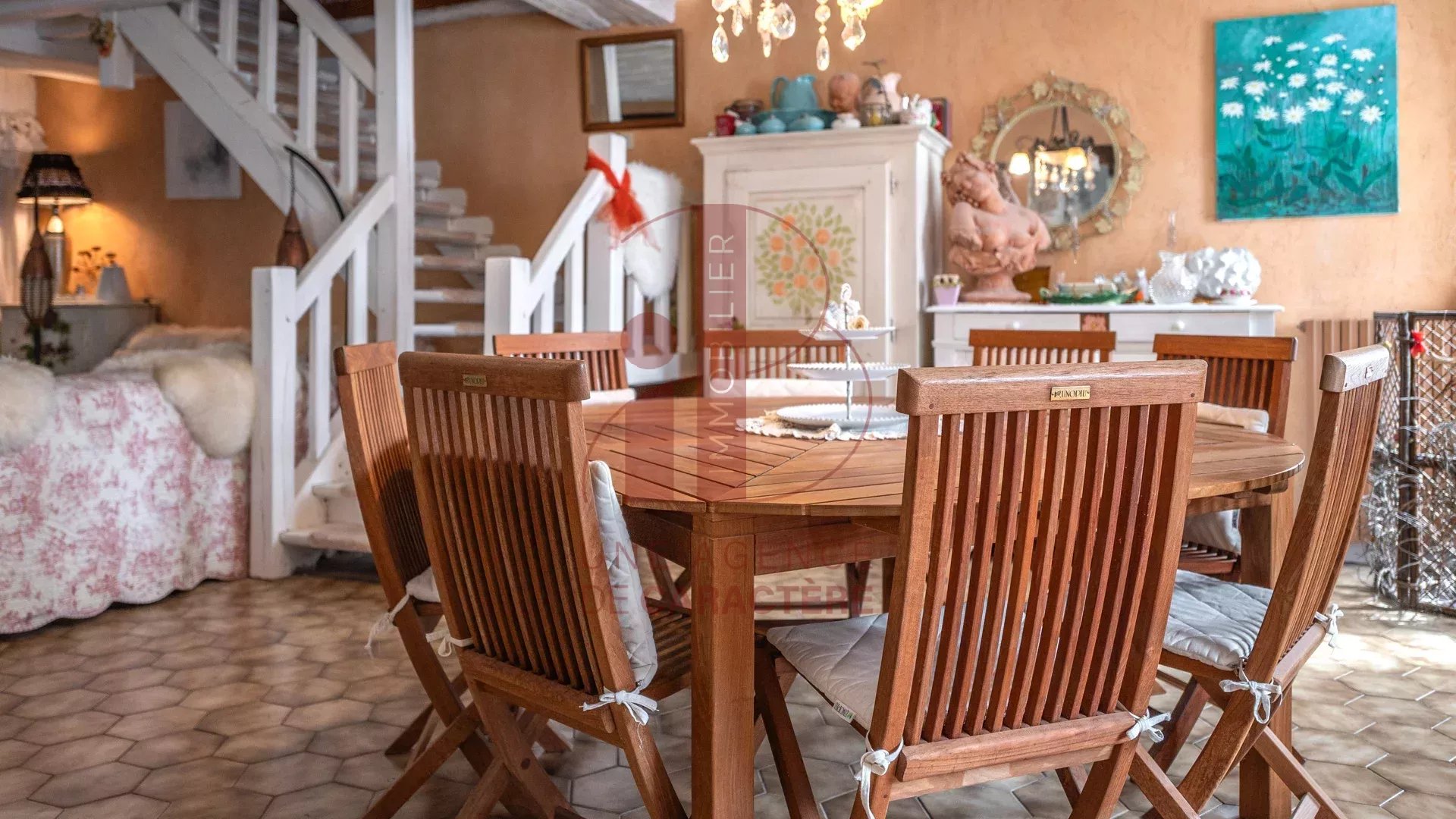 L'avantage, une MAISON PRINCIPALE de 164m² et un garage de 22m², idéale à transformer en cuisine dinatoire, entourés d'une terrasse d'angle couverte où il fait bon se poser, et une MAISON D'HOTES de 51m² avec un patio de 21m², carreaux de terre cuite au sol, un four à pain, ombragé par le cerisier et les fleurs environnantes.