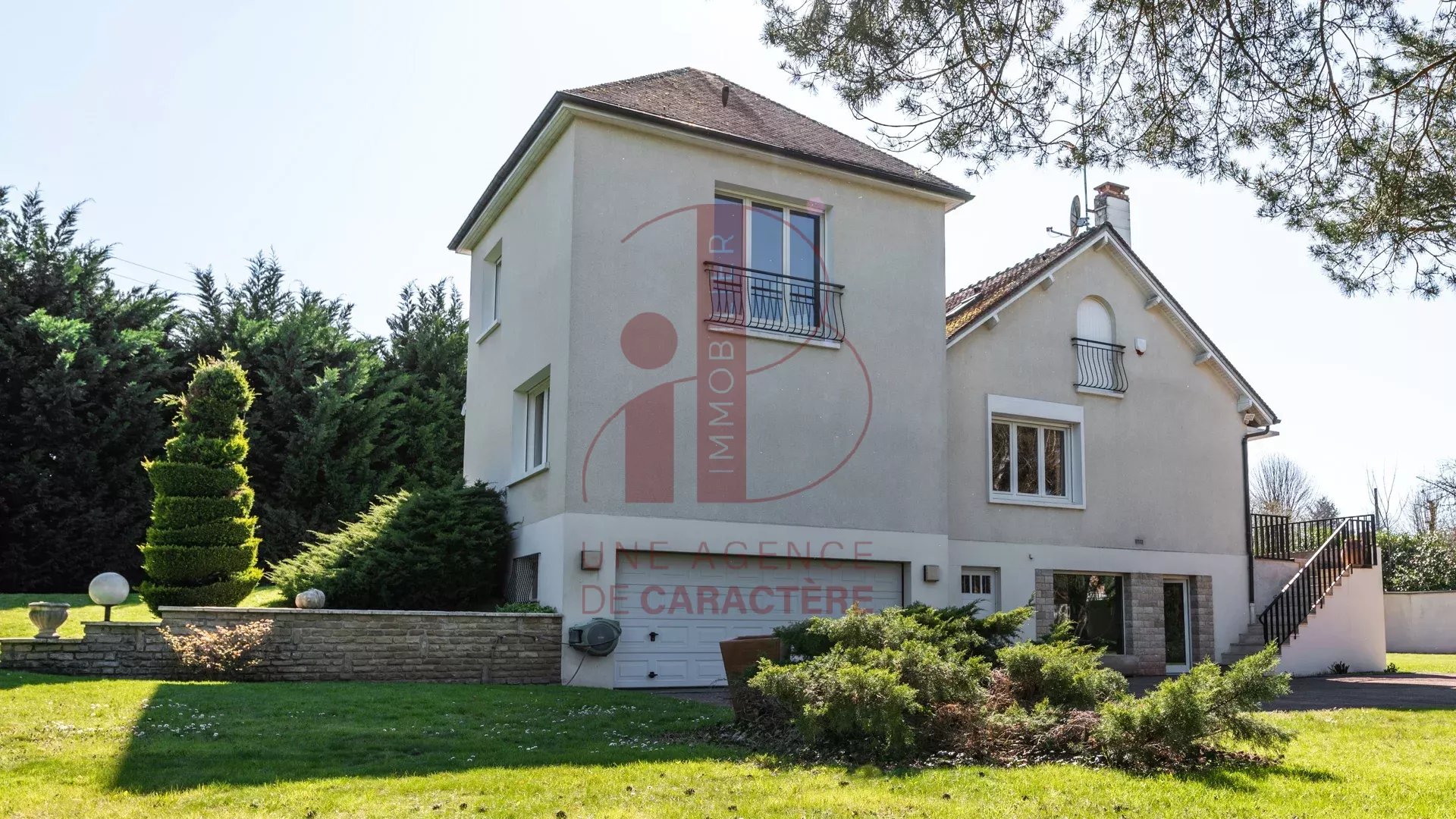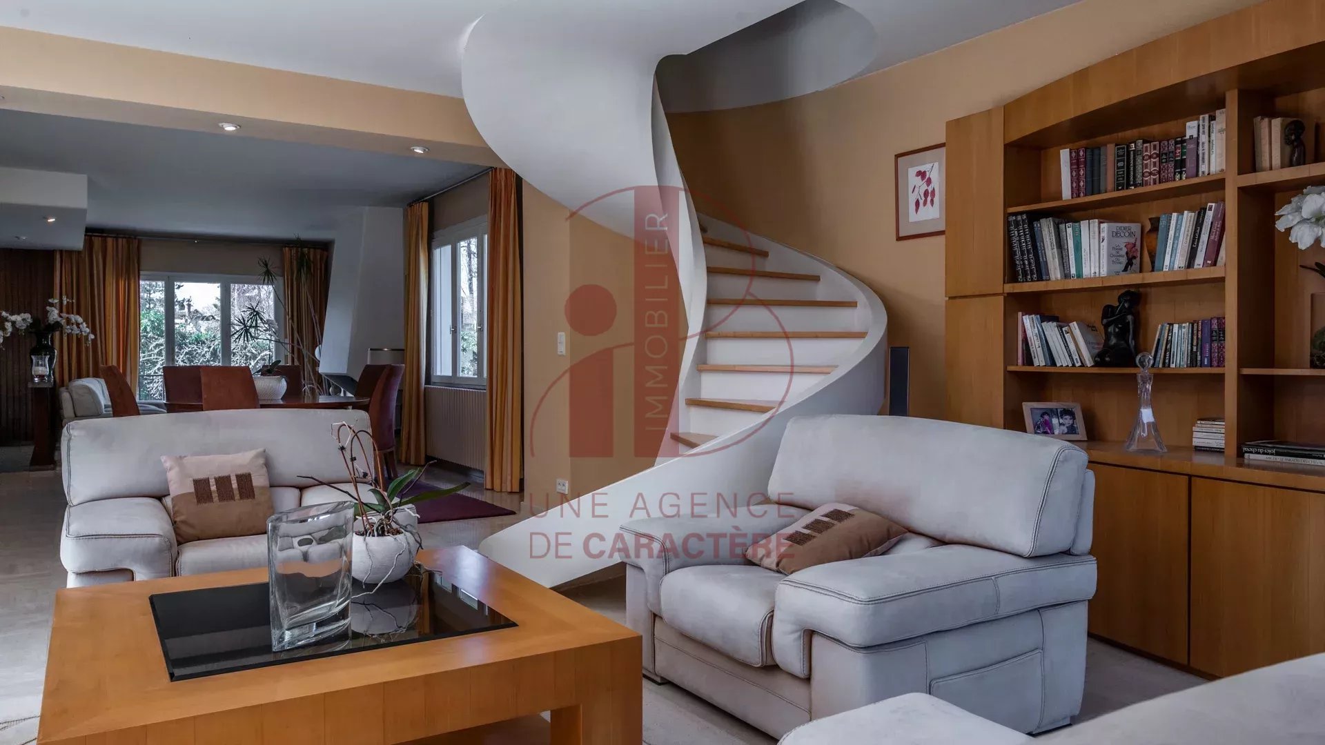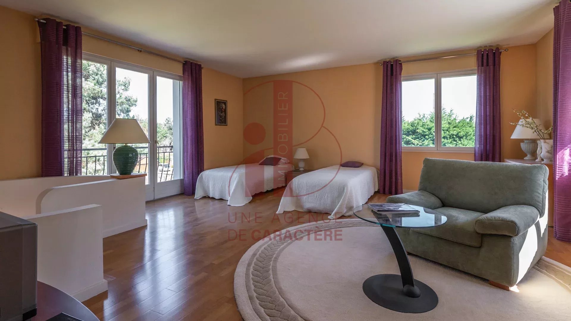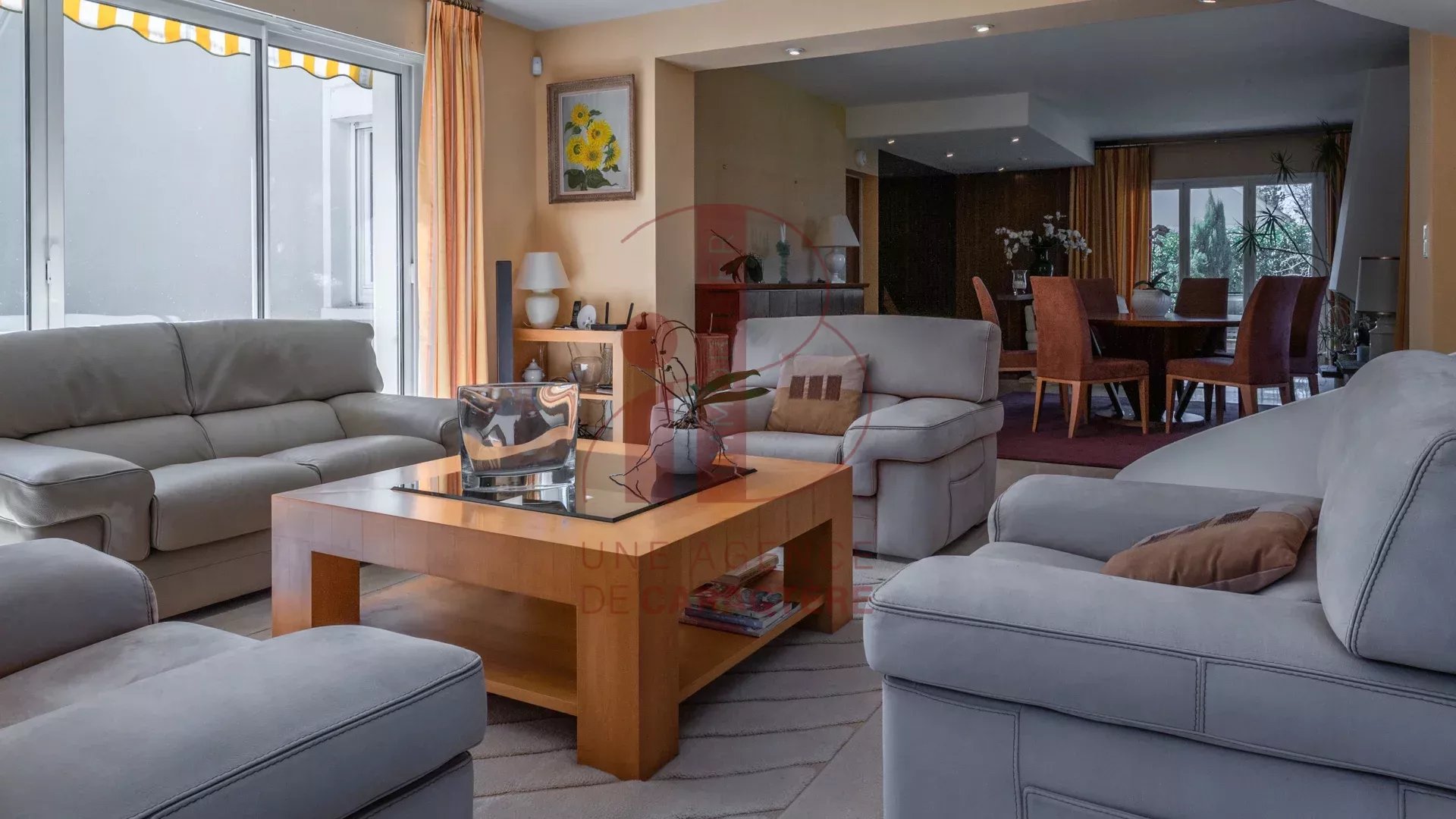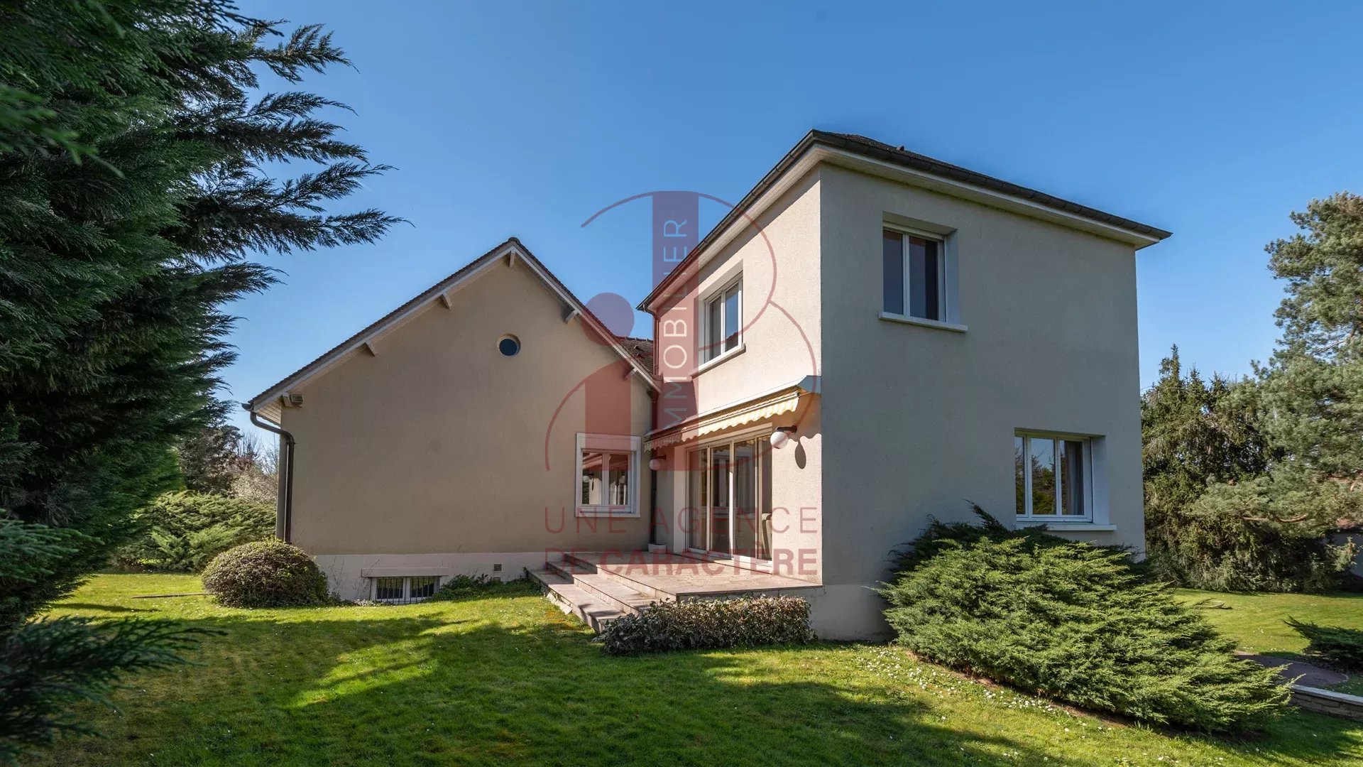 cette MAISON CONTEMPORAINE ANNEE "70" avec un AGRANDISSEMENT des années 2.000, d'une surface d'environ 320 m² élevée sur deux étages profite de volumes généreux et lumineux.