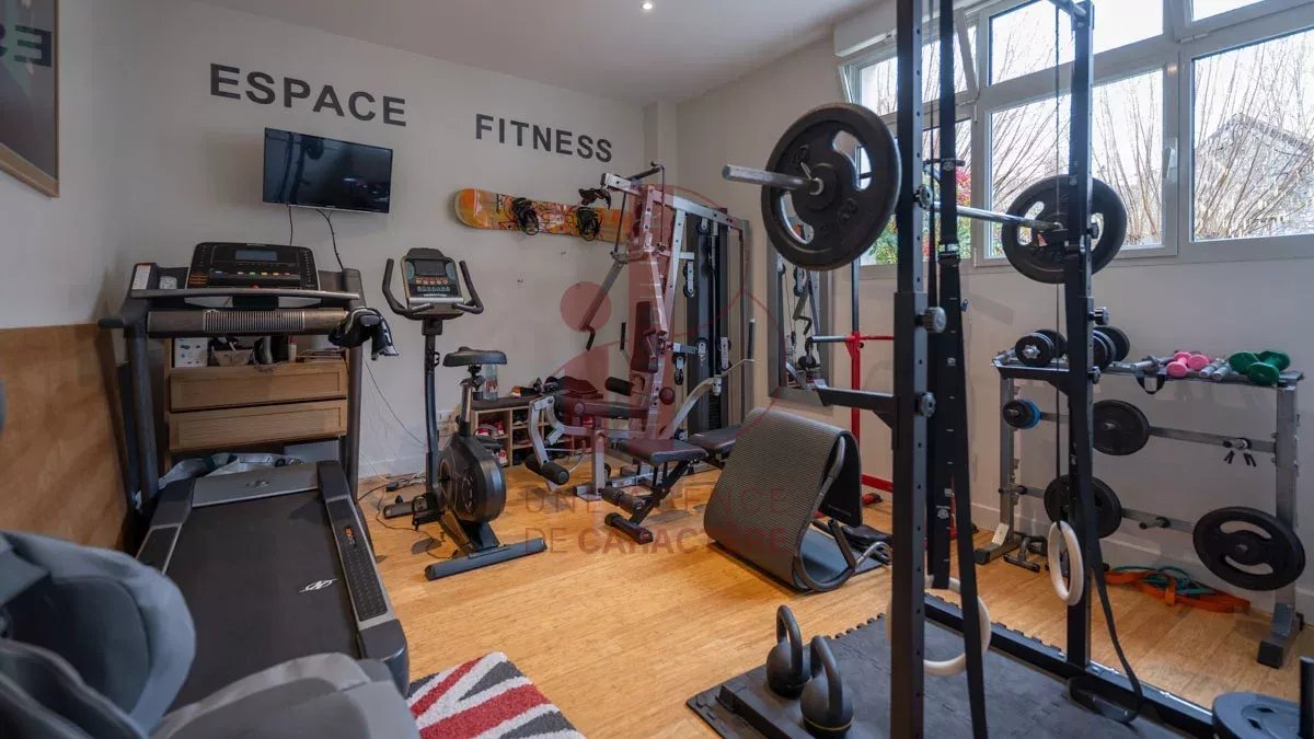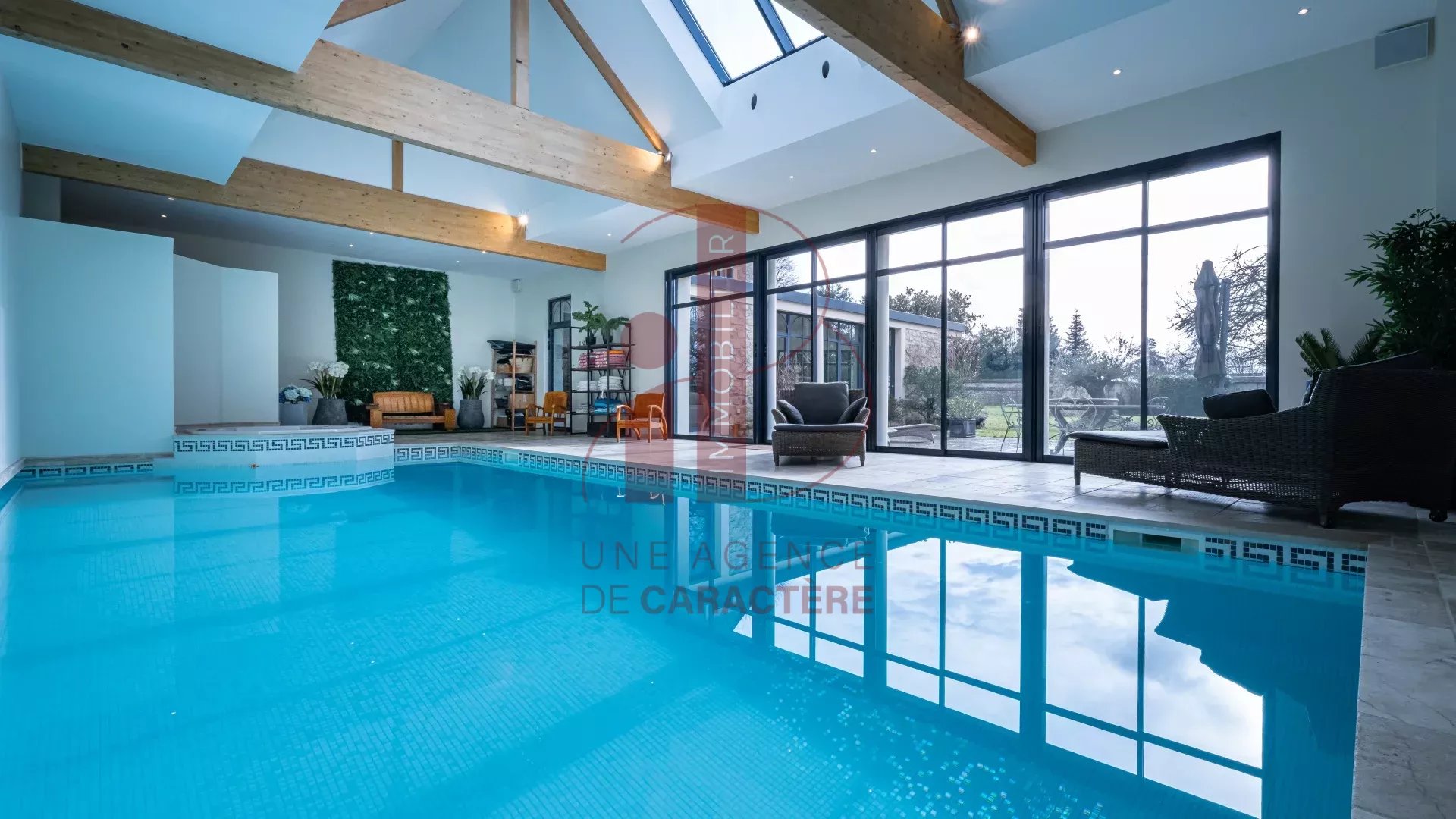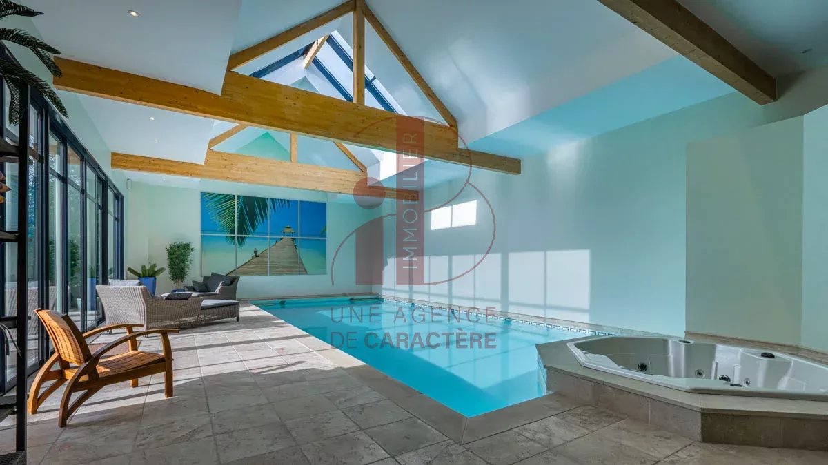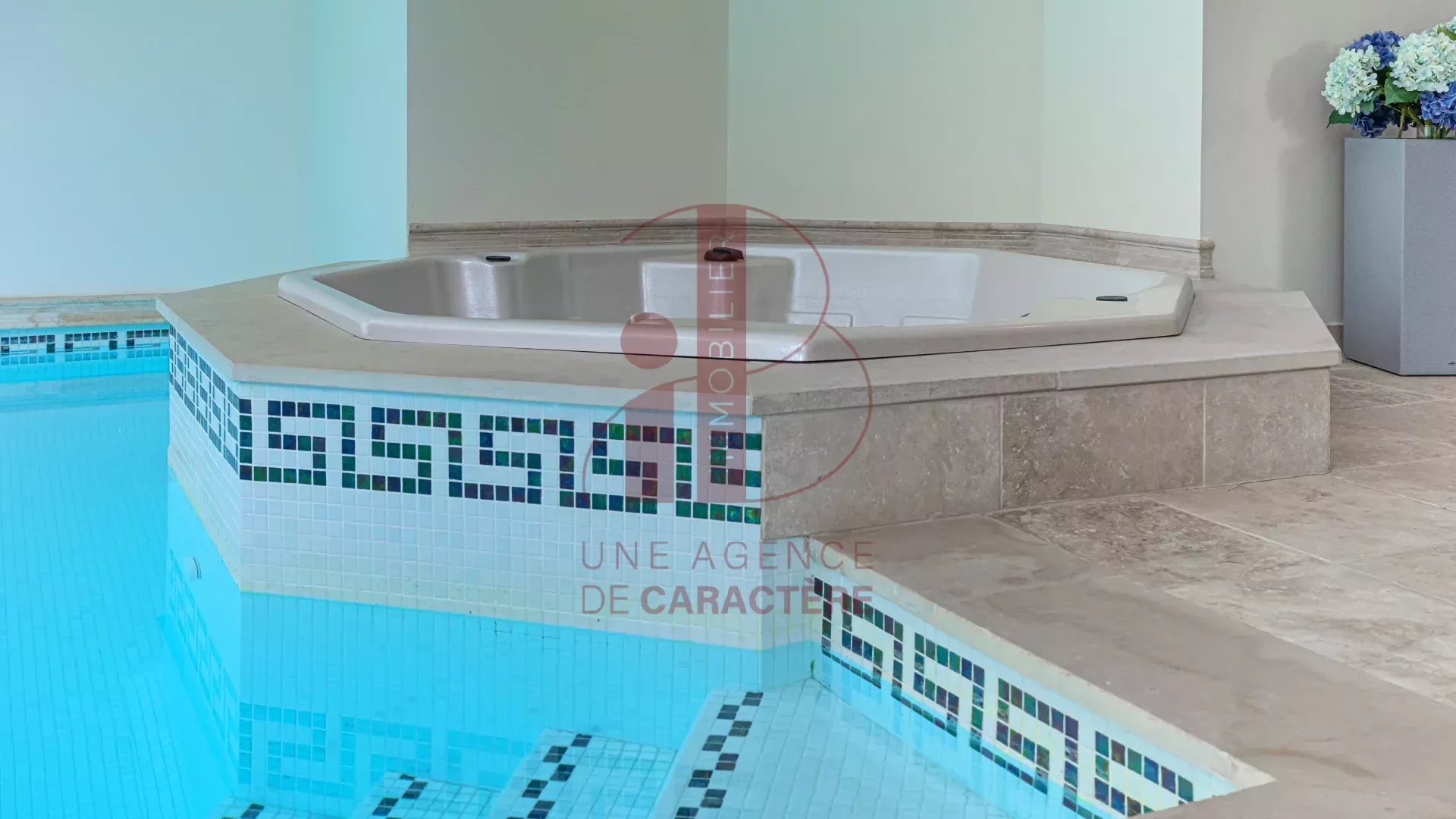 L'ESPACE PISCINE ET SALLE DE SPORT (168 m²) avec jacuzzi est un véritable lieu de détente. Chauffée par géothermie, la piscine est en pierre de Jérusalem, entourée de fermes en chêne. C'est un ESPACE CONFORT et BIEN ETRE avec SALLE DE SPORT, une salle d'eau, toilettes et le local technique. San oublier, une CAVE A VIN, pour les amateurs....