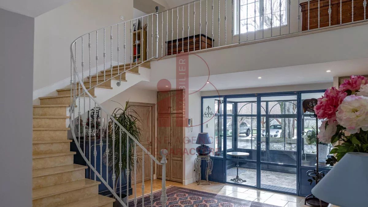 Au rez-de-chaussée, vous découvrirez une première petite entrée, tel un SAS, avec son sol en pierre de Souppes-sur-Loing, qui mène à une VASTE ENTREE CATHEDRALE en pierre de Jérusalem. Les pièces à vivre sont vastes et offrent une vue d'ensemble, une GRANDE CUISINE DINATOIRE OUVERTE (32 m²) et un OFFICE, s'articulent autour d'une SALLE A MANGER LUMINEUSE (35 m²), prolongée par UN GRAND SALON avec bow-window (53 m²) offrant de magnifiques vues sur le jardin aisin que d'UN DEUXIEME SALON (33 m²).
