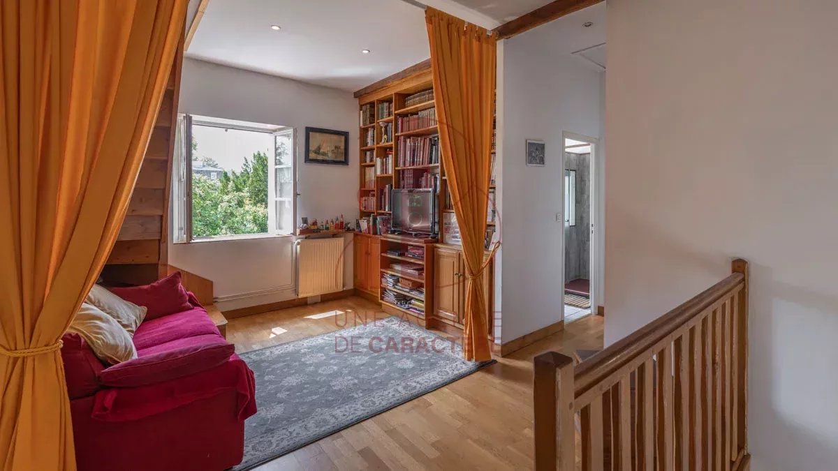 Au premier étage, un élégant SALON EN MEZZANINE avec bibliothèque surplombe la pièce de vie. TROIS CHAMBRES l'une sur jardin avec parquet massif et placards intégrés, les deux autres sur rue offrent des espaces confortables et lumineux. Une SALLE DE BAINS avec fenêtre, et des toilettes séparées viennent compléter l'étage.