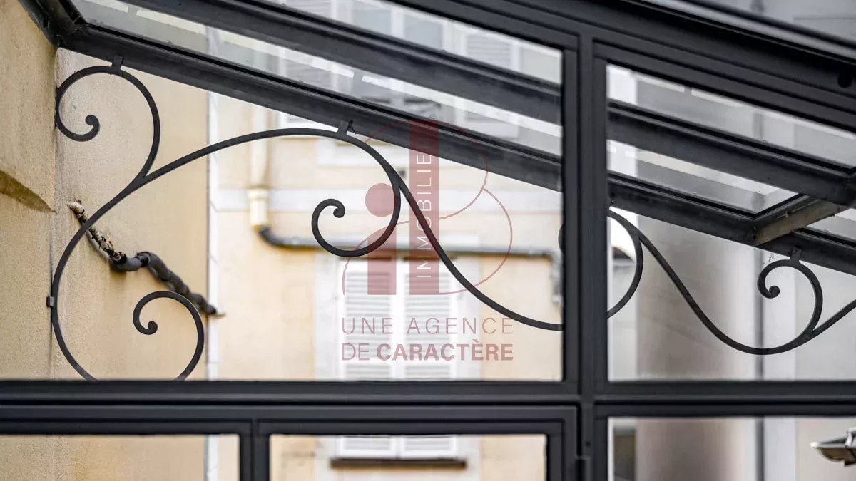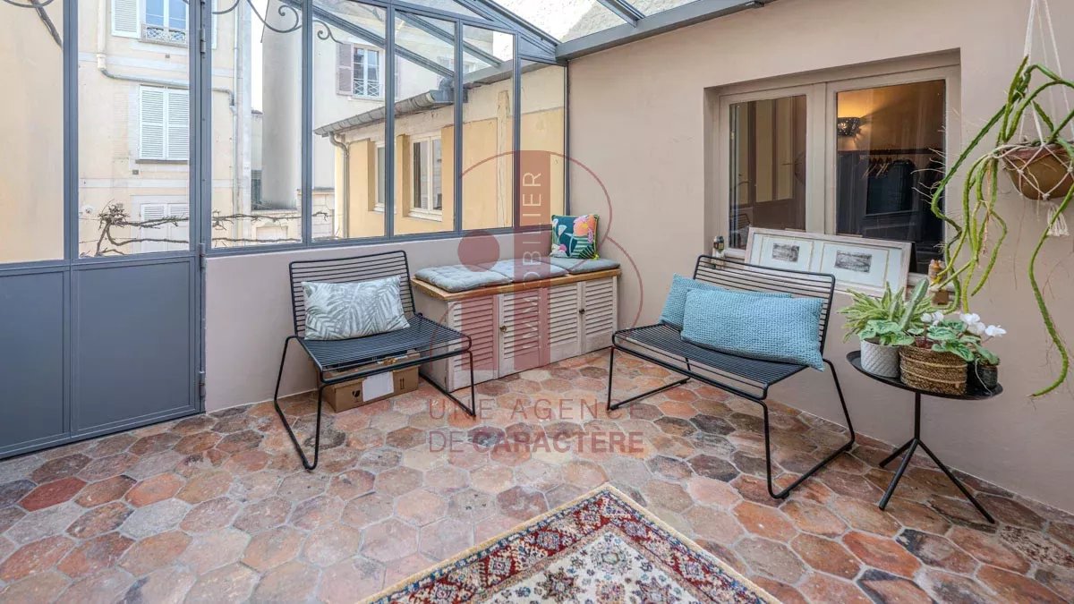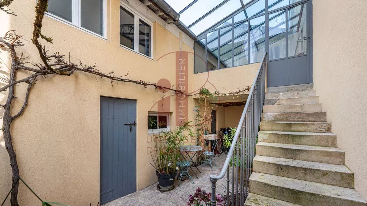 Cette demeure au caractère affirmé s'ouvre sur une cour close de murs, menant à un patio baigné de lumière, à usage de jardin d'hiver et d'entrée.