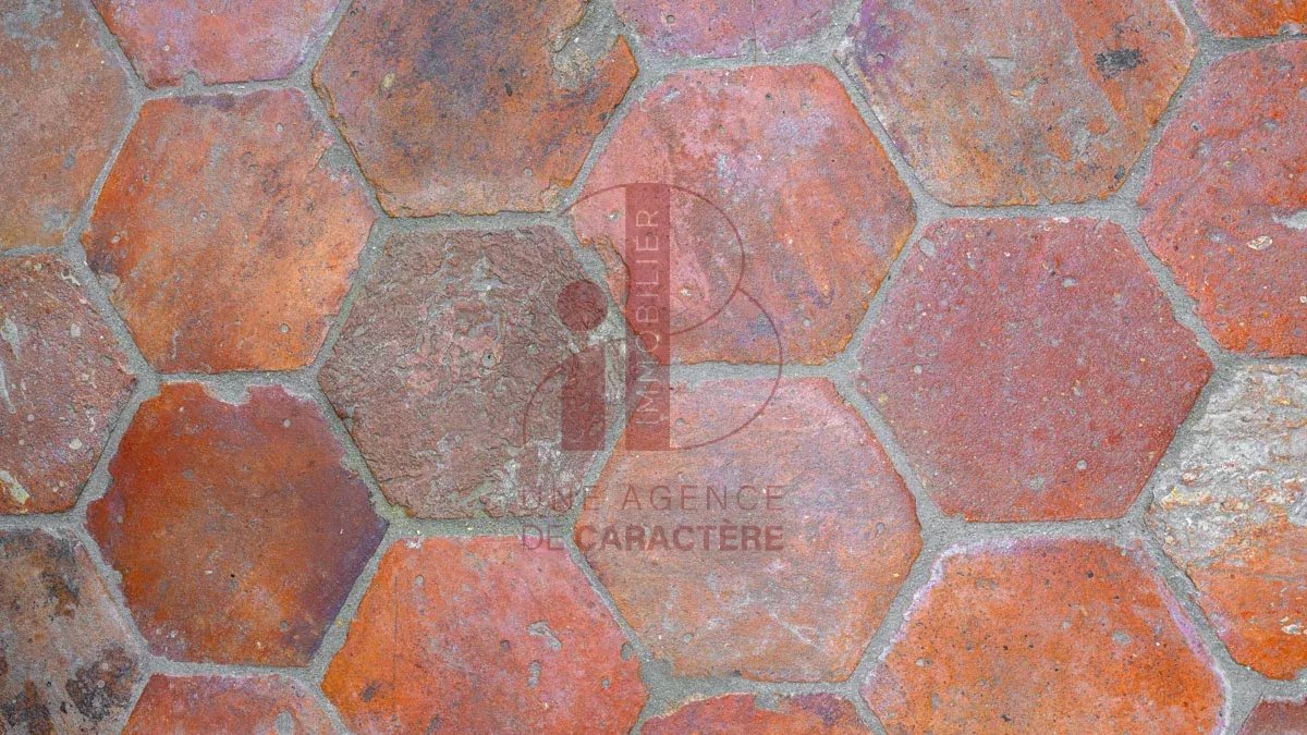 Sur la droite, l'habitation principale de 221 m² s'articule autour d'un couloir aux carreaux de ciment d'origine, desservant une cuisine équipée ouverte sur la salle à manger, ainsi que deux salons en enfilade, chacun doté d'une cheminée début de siècle, dont l'un ouvre sur la terrasse.