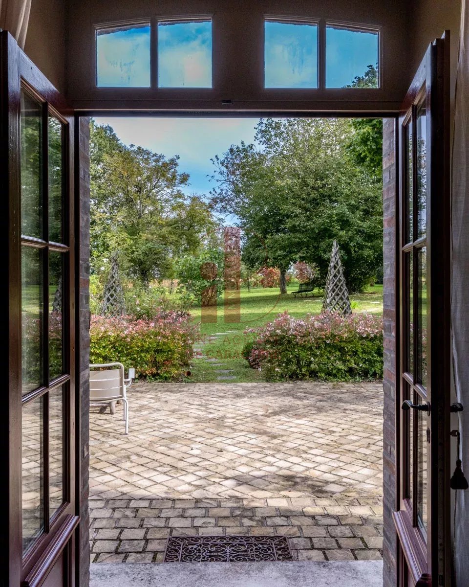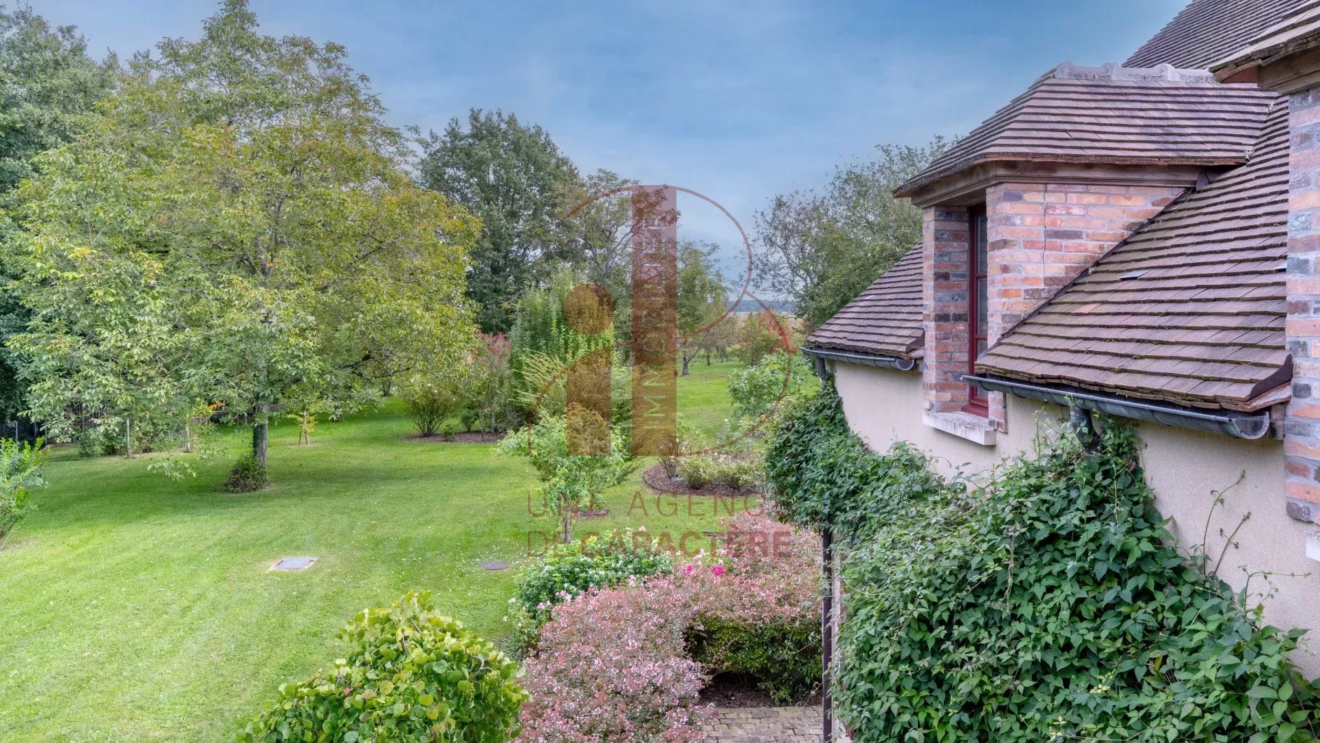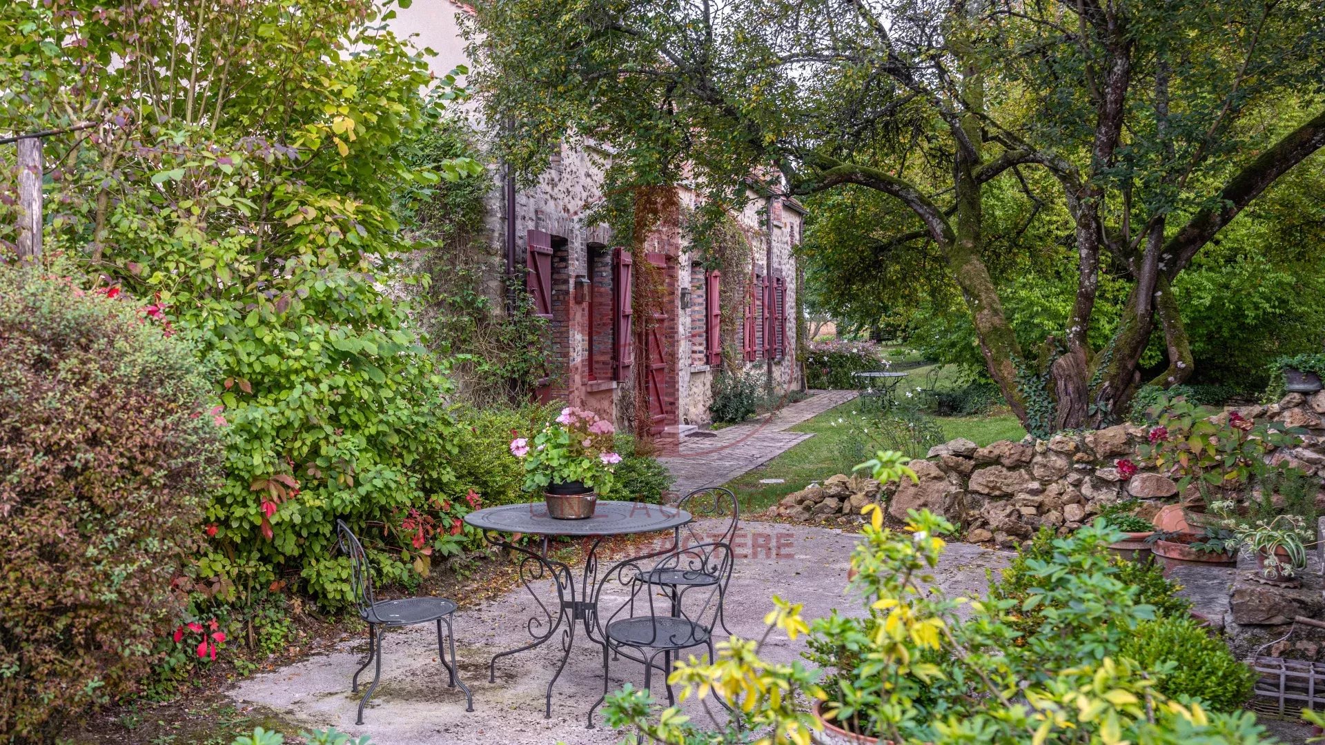 A l'extérieur, un MAGNIFIQUE JARDIN PAYSAGER, une roseraie comprenant des roses Pierre de Ronsard, Ghislaine de Feligonde et d'autres variétés choisies avec attention, un cerisier d'ornement, un figuier, de nombreux arbres de collection notamment un beau Gingko Biloba. Le jardin se prolonge sur la campagne environnante, sans vis à vis.