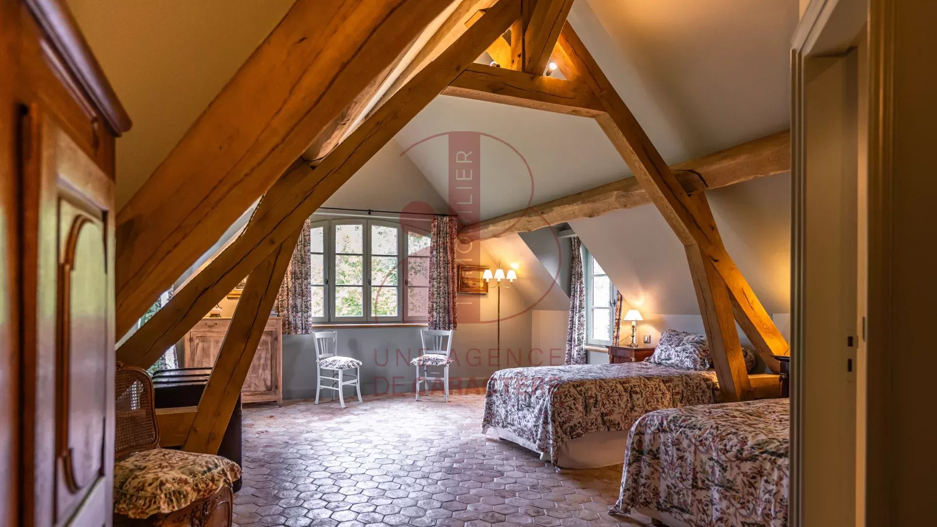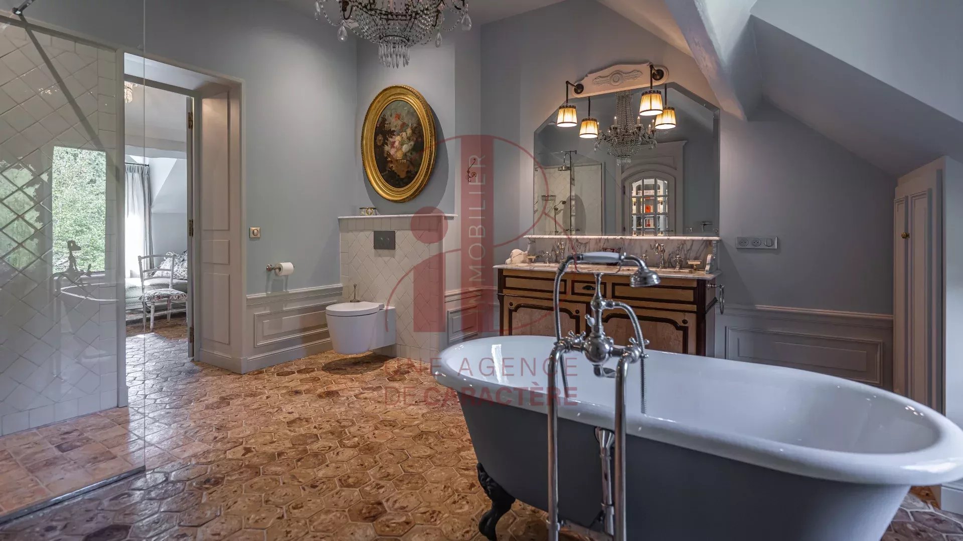 A l'étage vous retrouverez DEUX CHAMBRES avec SALLES de DOUCHES PRIVATIVES, et une SUITE PARENTALE de 25 m² avec DRESSING et SALLE DE BAINS. La baignoire ancienne aux pieds de Lion avec vue sur la nature environnante est un rêve...