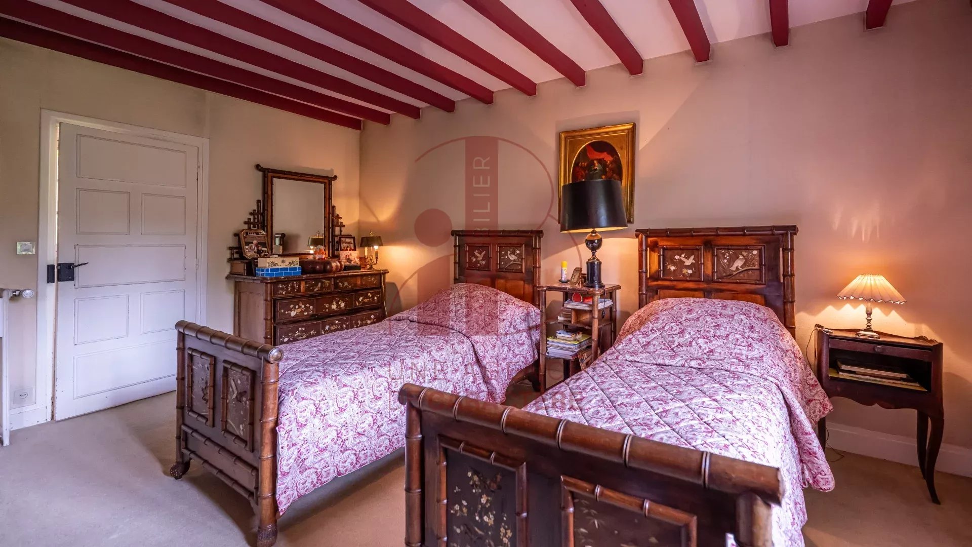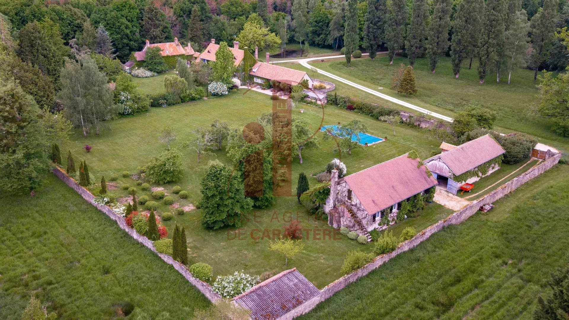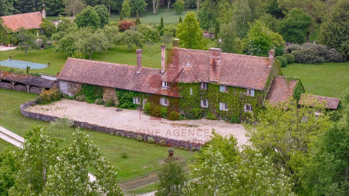 Le DOMAINE est accessible par une élégante allée cavalière bordée de chênes, vous menant à un MANOIR du XIXe siècle de 350 m², Une MAISON dite "FORESTIERE" de 280m², une ORANGERIE de 82m², une MAISON DE GARDIEN de 97m², dépendances, entouré d'un PARC de plus de 10 HECTARES avec PISCINE CHAUFFEE dans un calme absolu, à l'abri des regards.