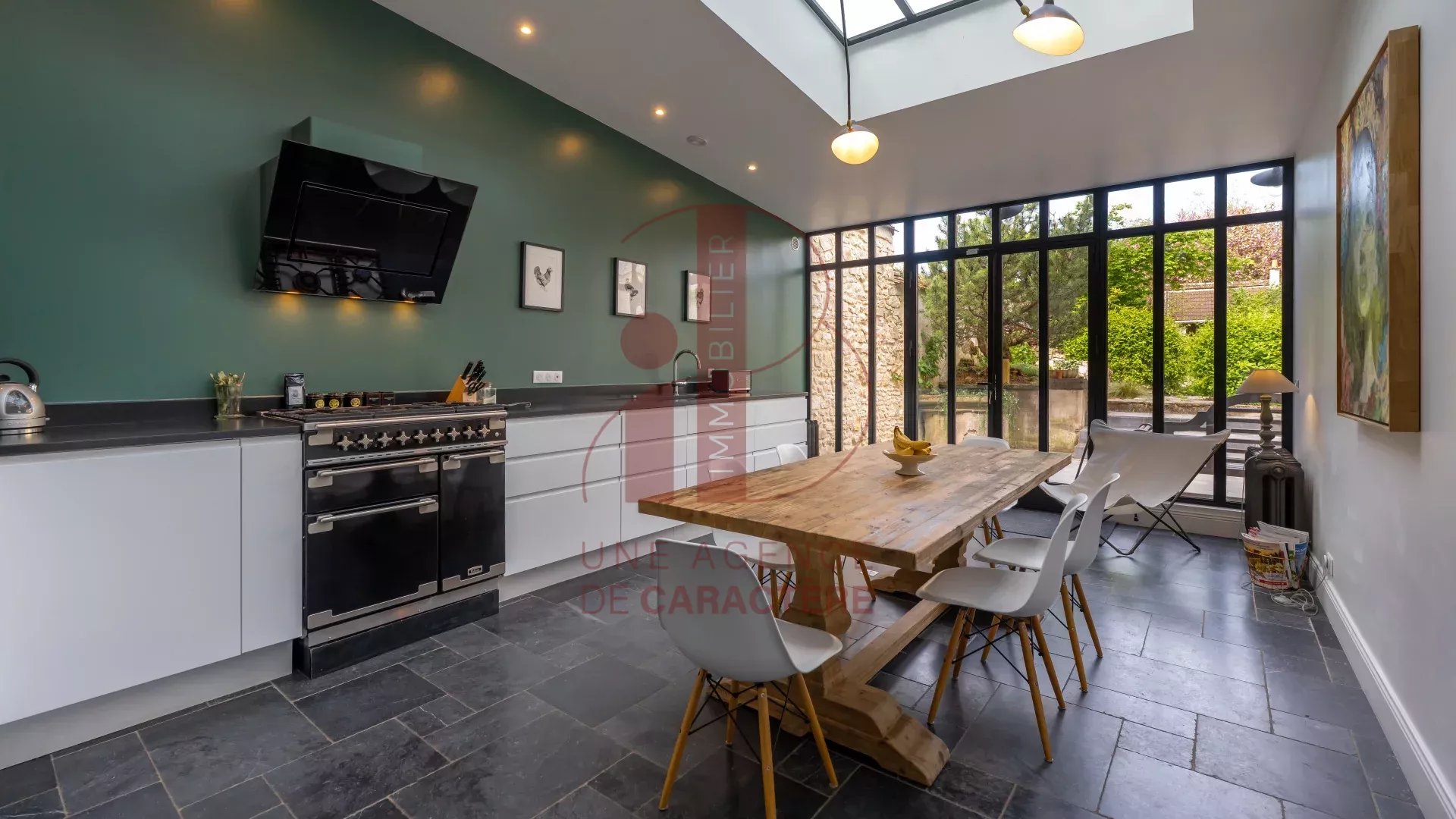Notes techniques : DPE "C", chauffage au gaz de ville, fenêtres double vitrage et structure en acier pour le toit verrière, impôts fonciers : 4.000 .