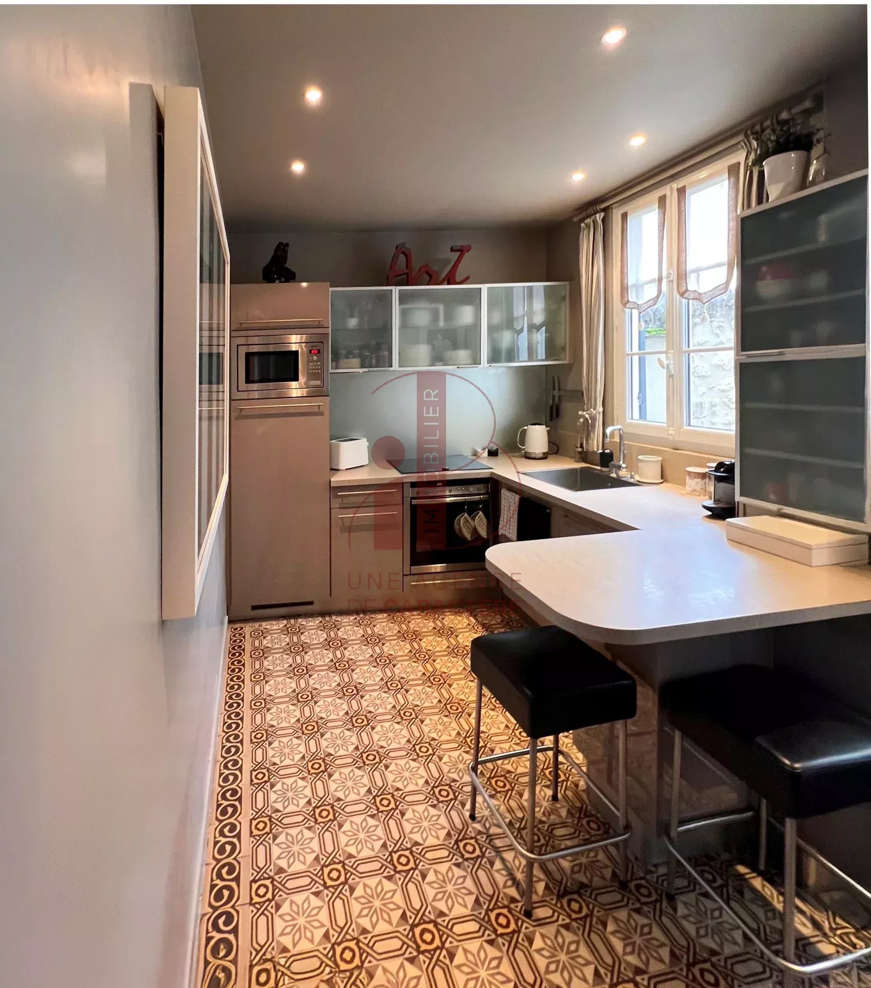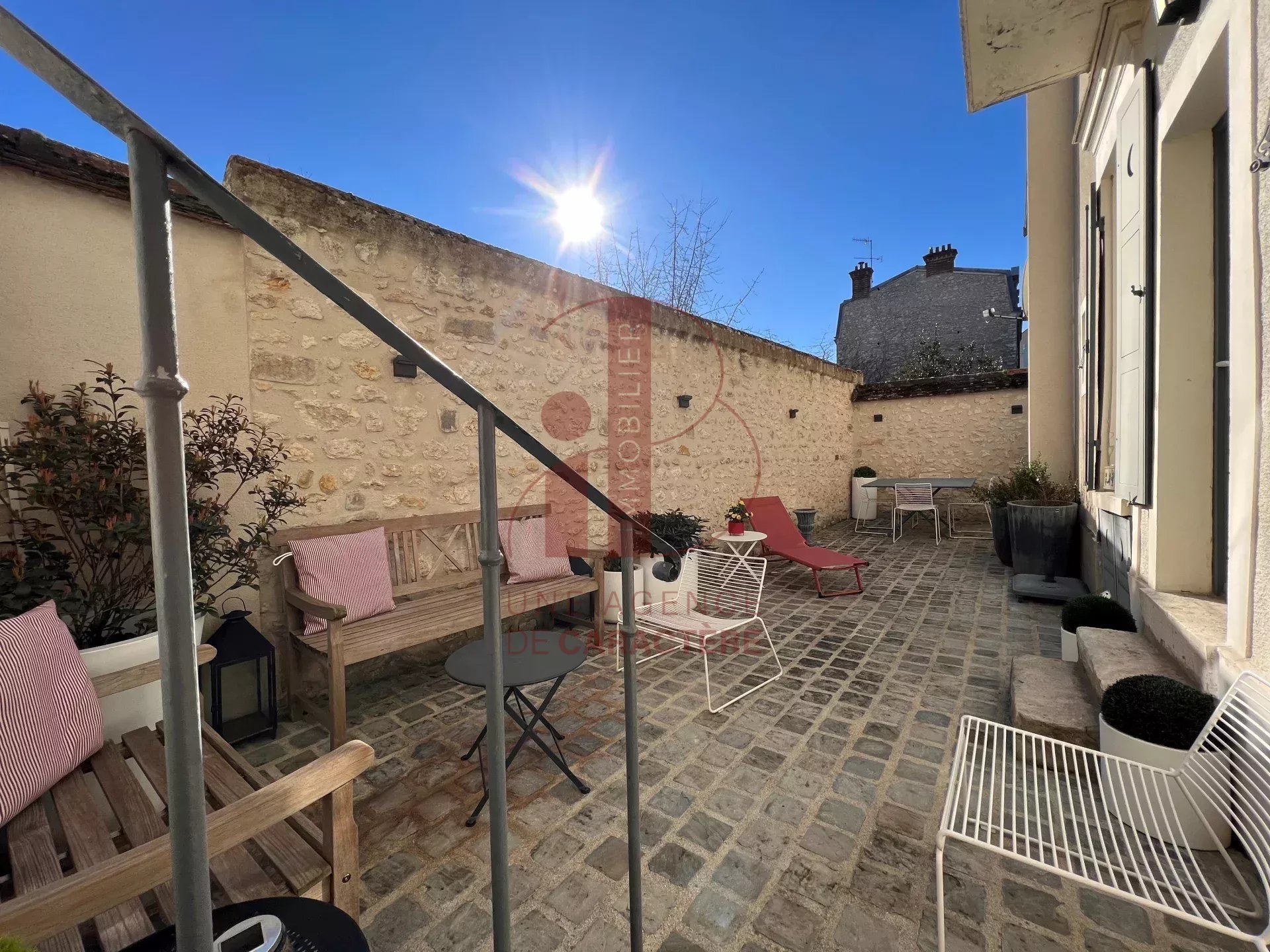 MAISON DE VILLE de QUALITE ARCHITECTURALE, jolie façade, en retrait de rue avec une cour pavée devant et derrière, a été entièrement rénovée avec une décoration élégante et intemporelle d'une superficie de 166 m² Carrez et 203 m² au sol.