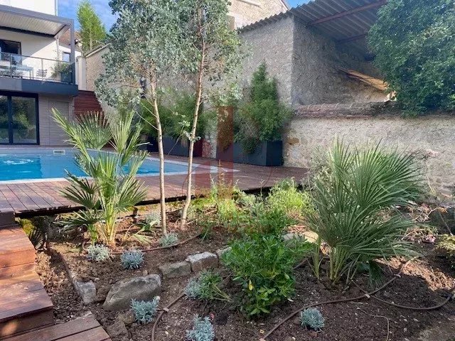 Notes techniques : chaudière à condensation au gaz de ville avec production d'eau chaude et pompe à chaleur pour la piscine, climatisation au premier et deuxième étage de la maison principale, double vitrage et toiture refaite avec 2022 avec isolation, faitage et gouttières changés. Terrasse bio climatique avec ouverture possible du toit. Toiture refaite - chaudière à condensation récente et PAC pour la piscine au chlore avec rideau immergé. Taxe foncière 4.930 - Un seul compteur pour l'eau et l'électricité et des sous-compteurs -