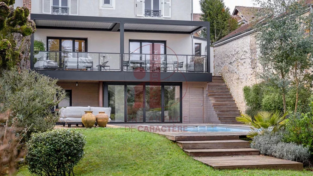 IB IMMOBILIER vous présente à FONTAINEBLEAU en LISIERE de FORET mais à PROXIMITE des COMMERCES et du CENTRE-VILLE, cette PROPRIETE BOURGEOISE de 286 m² habitables (313 m² au sol) ENTIEREMENT RENOVEE et une MAISON louée de 150 m² habitables, sur un JARDIN PAYSAGER de 1.415 m².