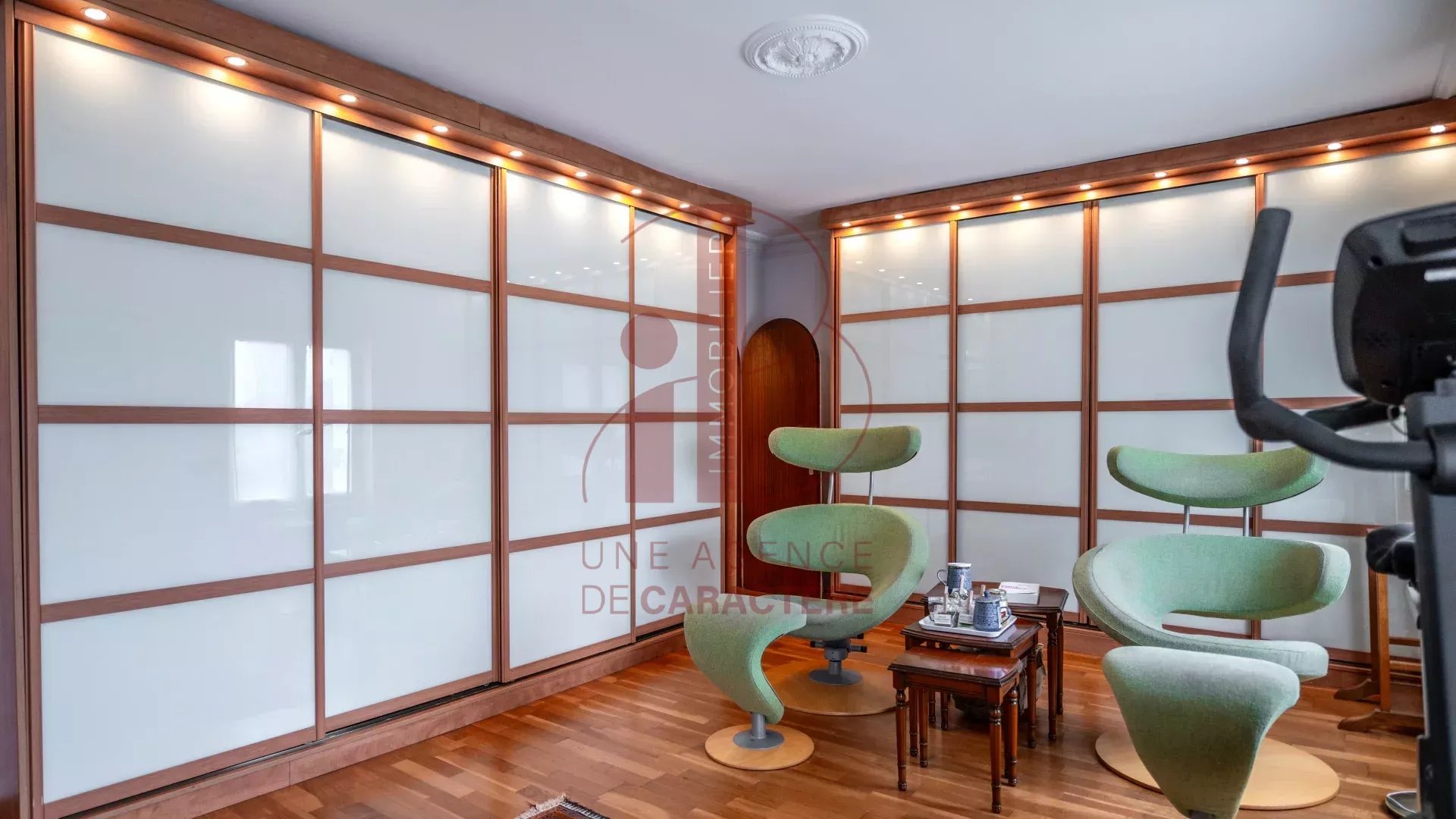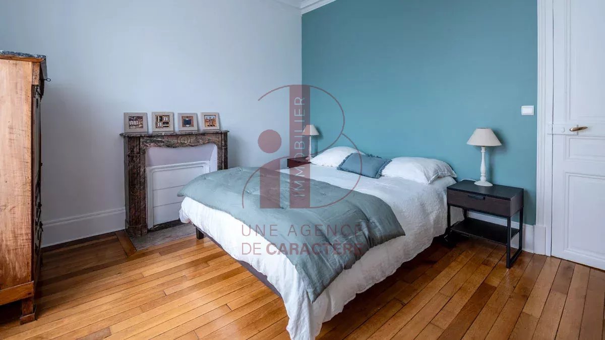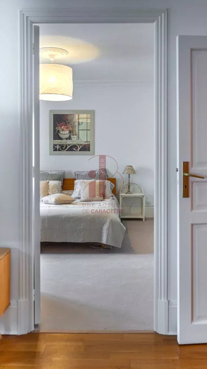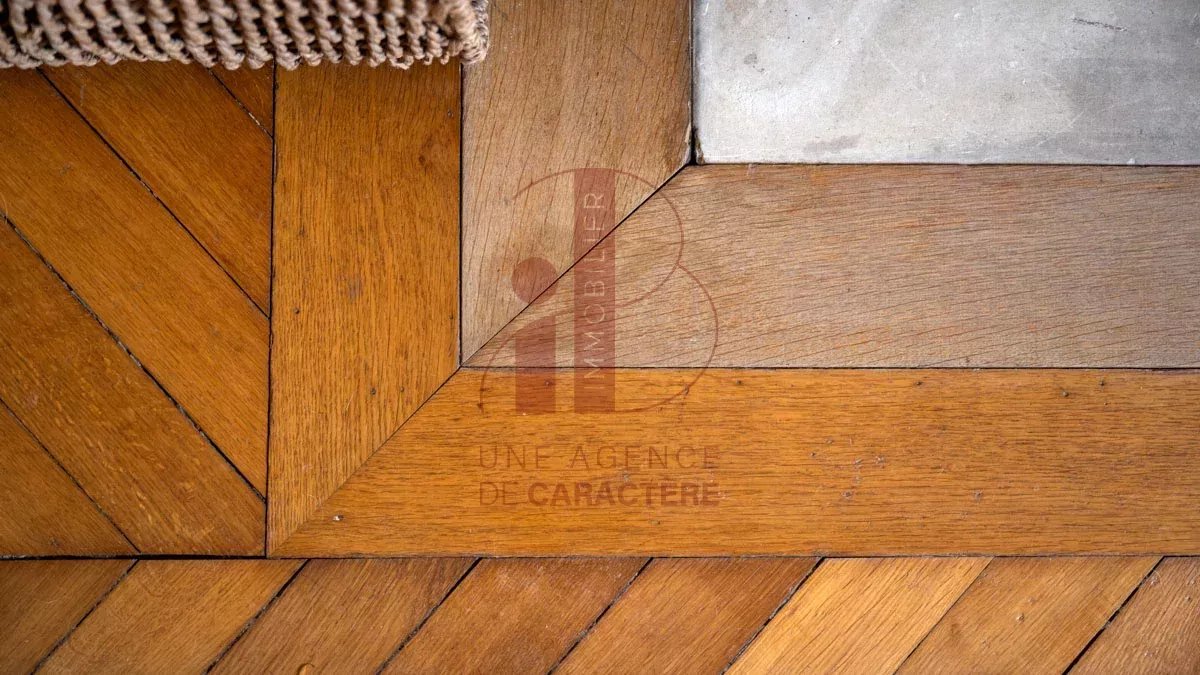 Les éléments anciens conservés, parquet chêne point de Hongrie, moulures et rosaces au plafond, cheminées, lui confèrent un charme indéniable.