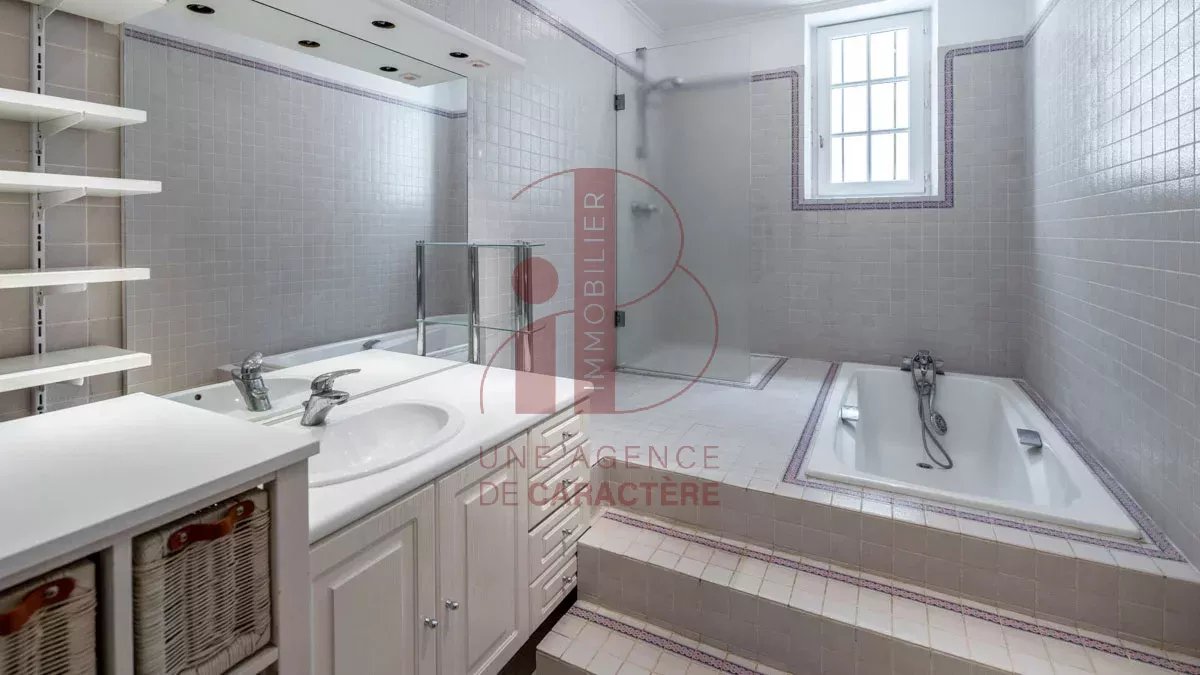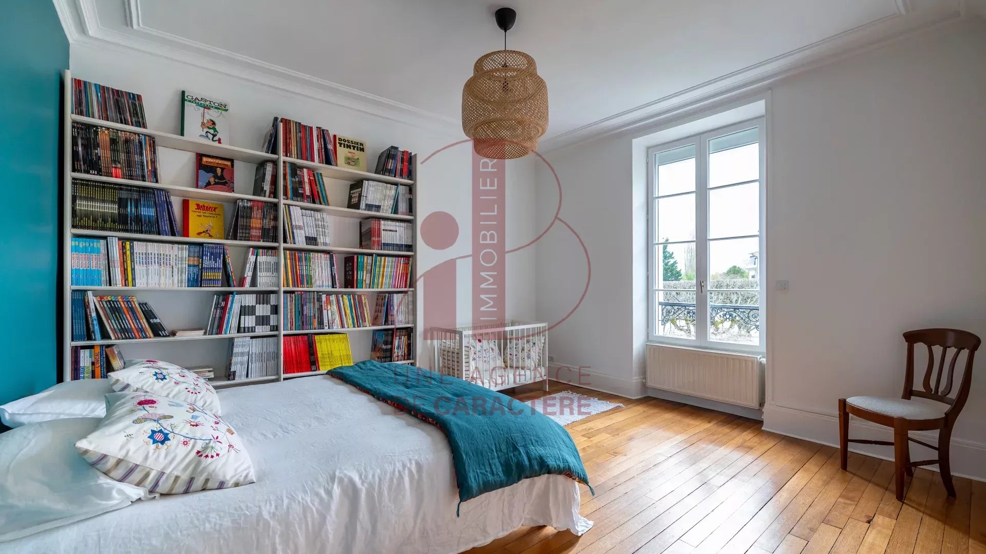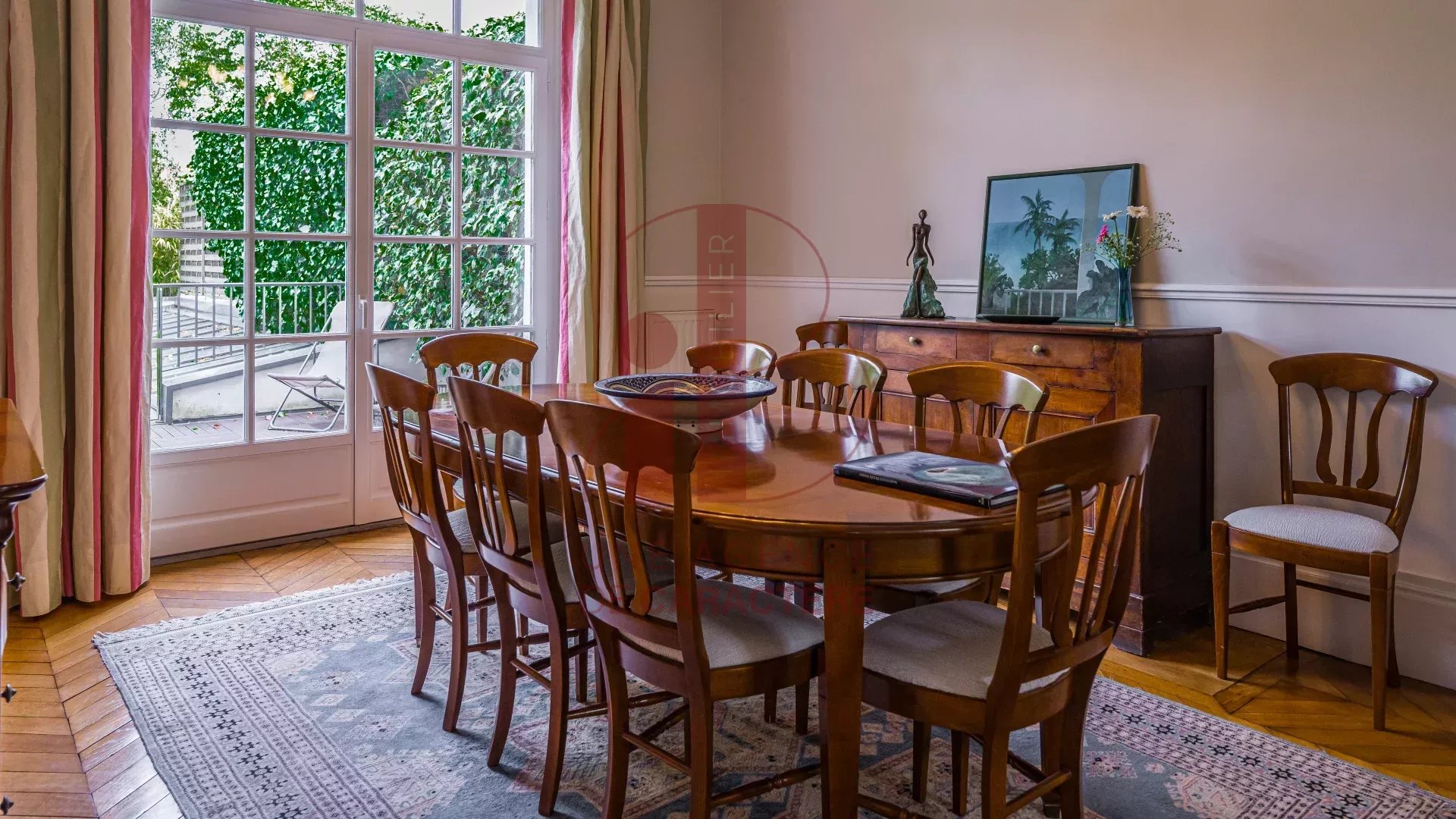 Les éléments anciens conservés, parquet chêne point de Hongrie, moulures et rosaces au plafond, cheminées, lui confèrent un charme indéniable.
