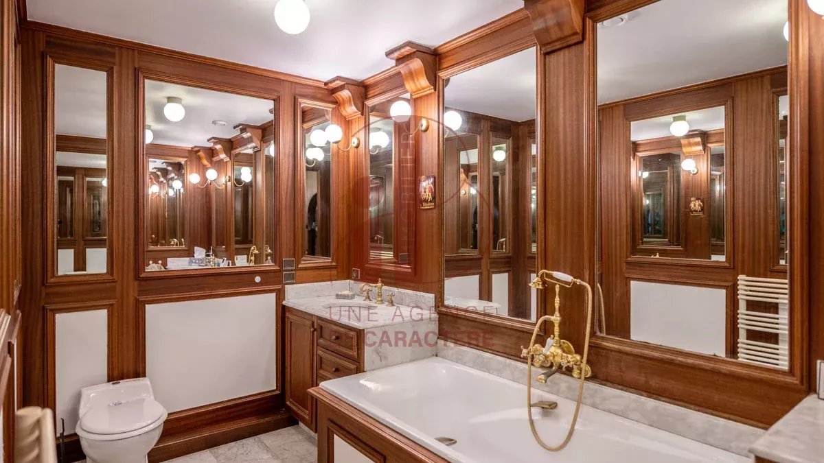 Au second étage, un dégagement faisant également office de bibliothèque dessert DEUX GRANDS BUREAUX ou CHAMBRES, à votre guise, une salle d'eau avec WC, ainsi que LA SUITE PARENTALE de 42m² composée d'un salon télé- dressing , une chambre et une salle de bains en boiserie marine avec un WC (Sanibroyeur).
