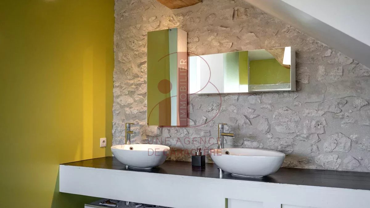 DEUX APPARTEMENTS INDEPENDANTS LOUES, décorés avec soin : un T2 de 50 m² et un T3 en duplex de 50 m² également. Chacun dispose de son entrée privative et de compteurs séparés, assurant une gestion autonome. Les appartements sont totalement indépendants avec aucun vue sur la maison principale, garantissant la tranquillité de chacun. Les revenus locatifs annuel de 15 600 €, soit environ 250.000 € d'autofinancement sur 20 ans, représentant plus de 22% de la valeur de la propriété.