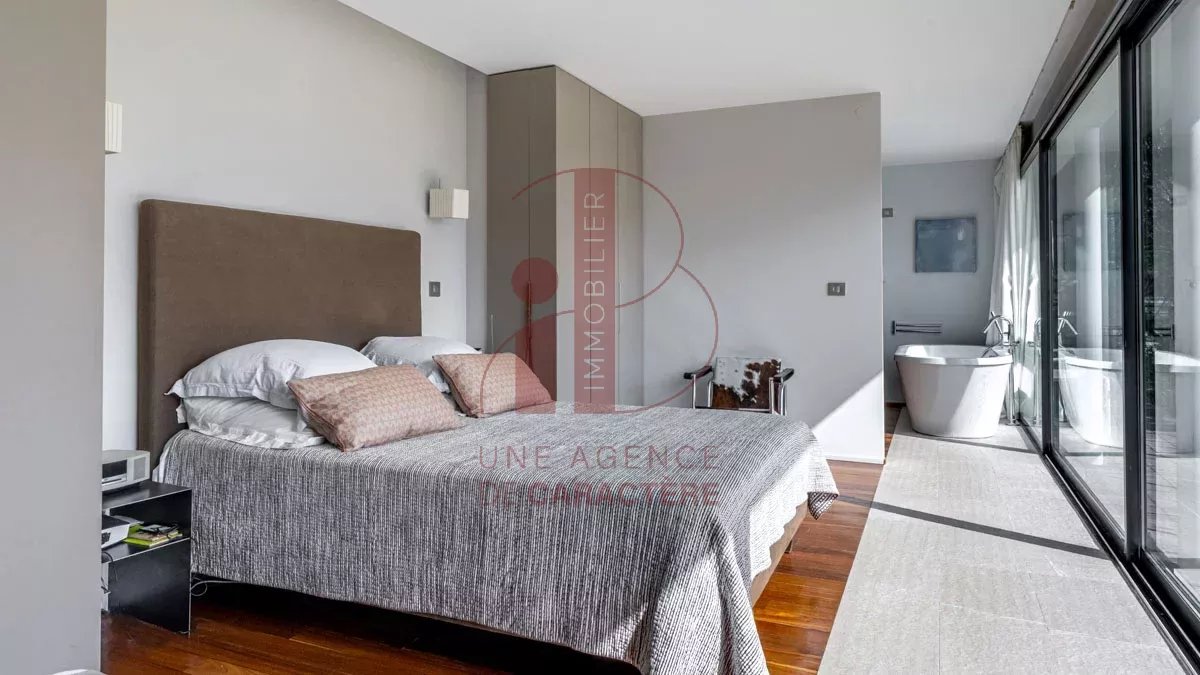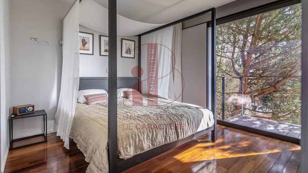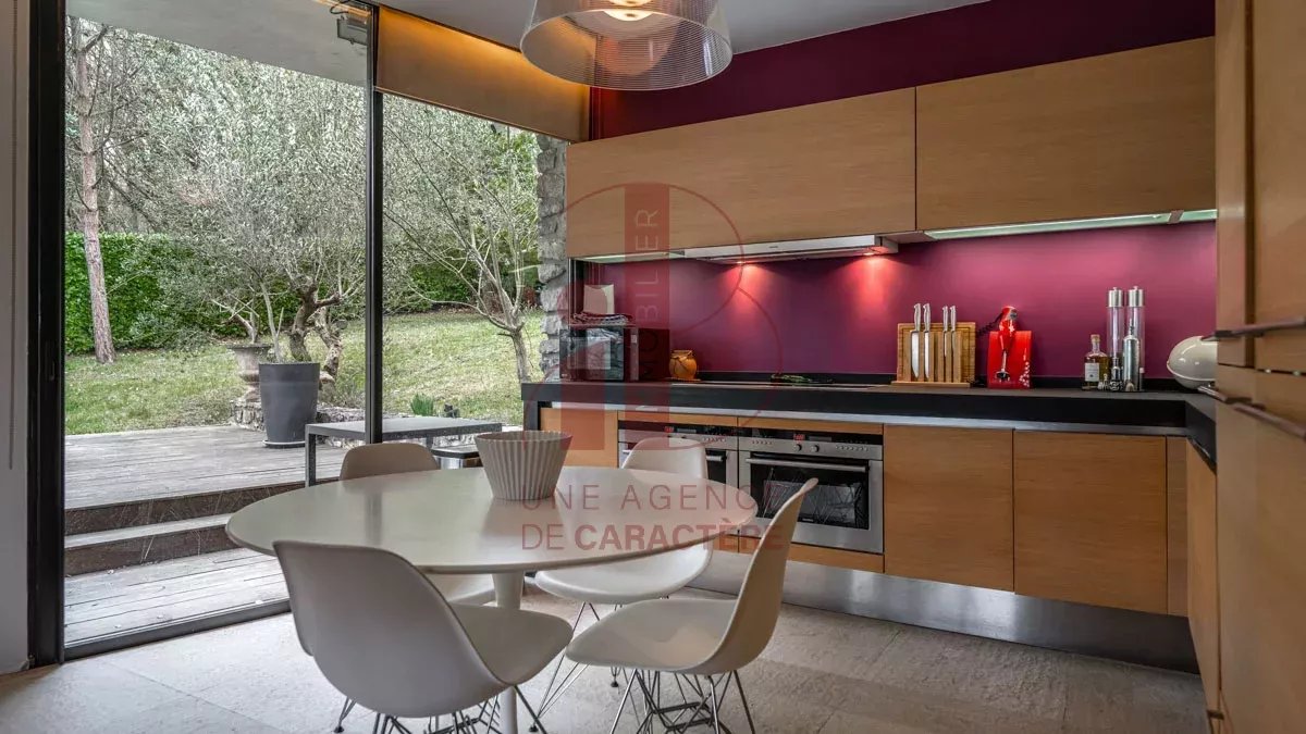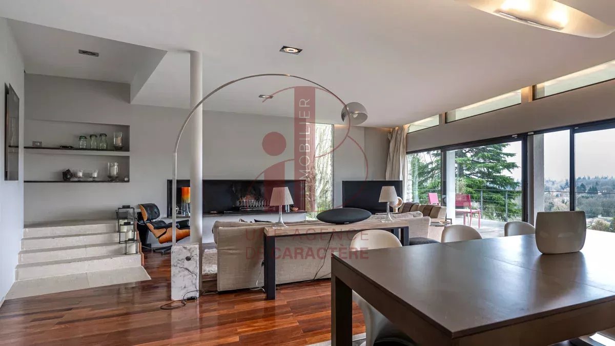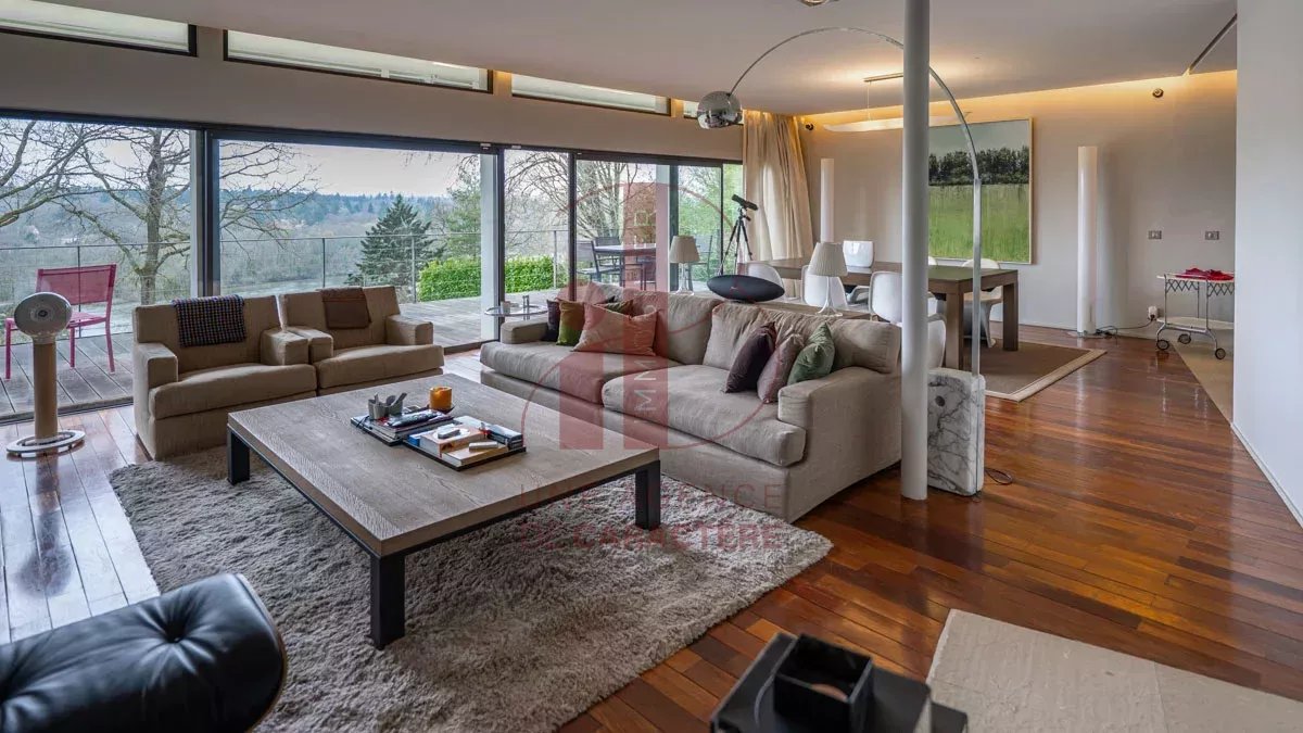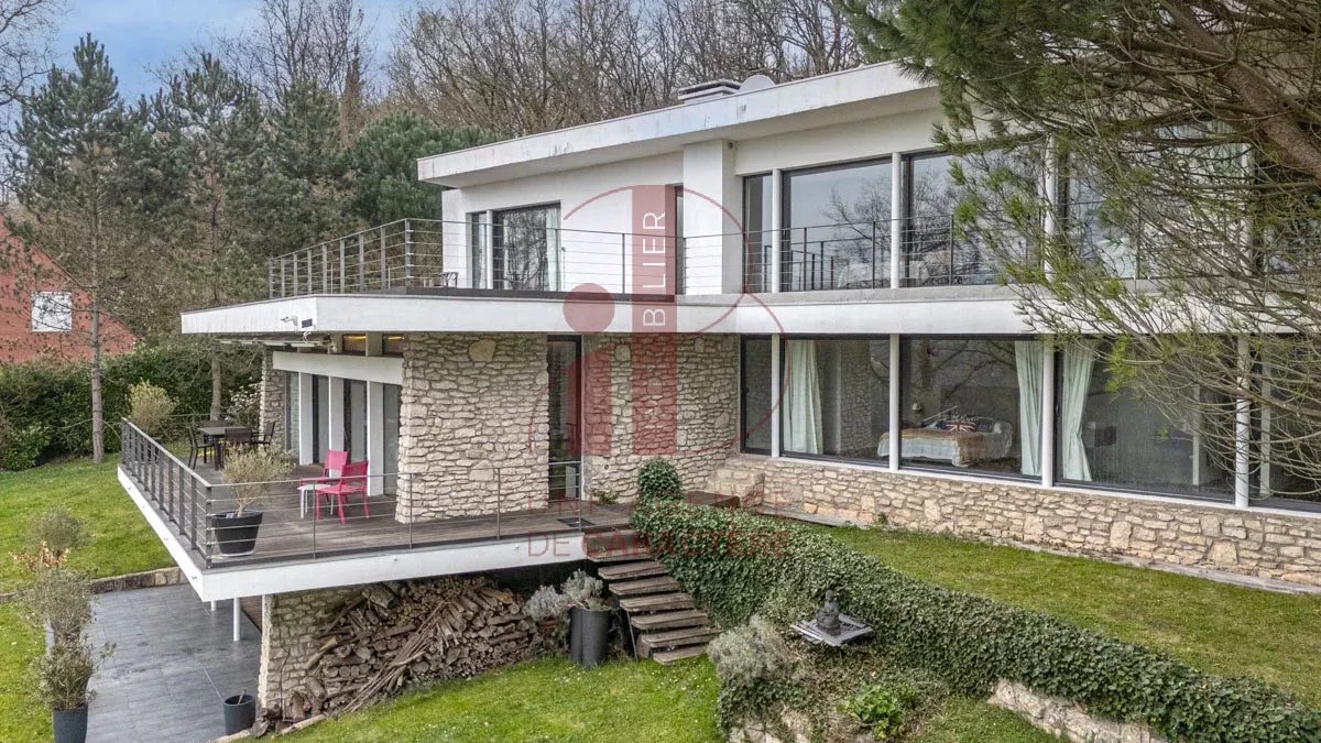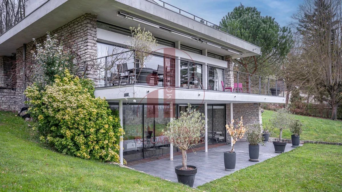 Construite en 1965, cette MAISON D'ARCHITECTE a été réactualisée au goût du jour, tout en conservant son architecture d'origine. Conçue sur trois niveaux rez-de-jardin, rez-de-chaussée et étage elle est baignée de lumière et profite d'une sublime VUE PANORAMIQUE.