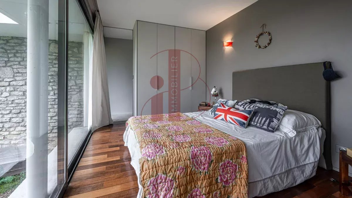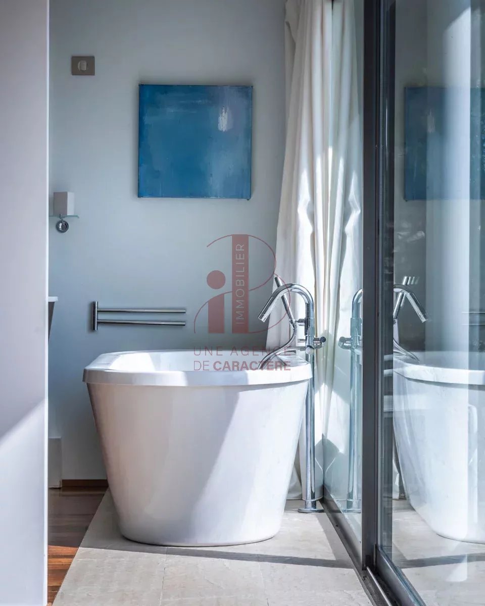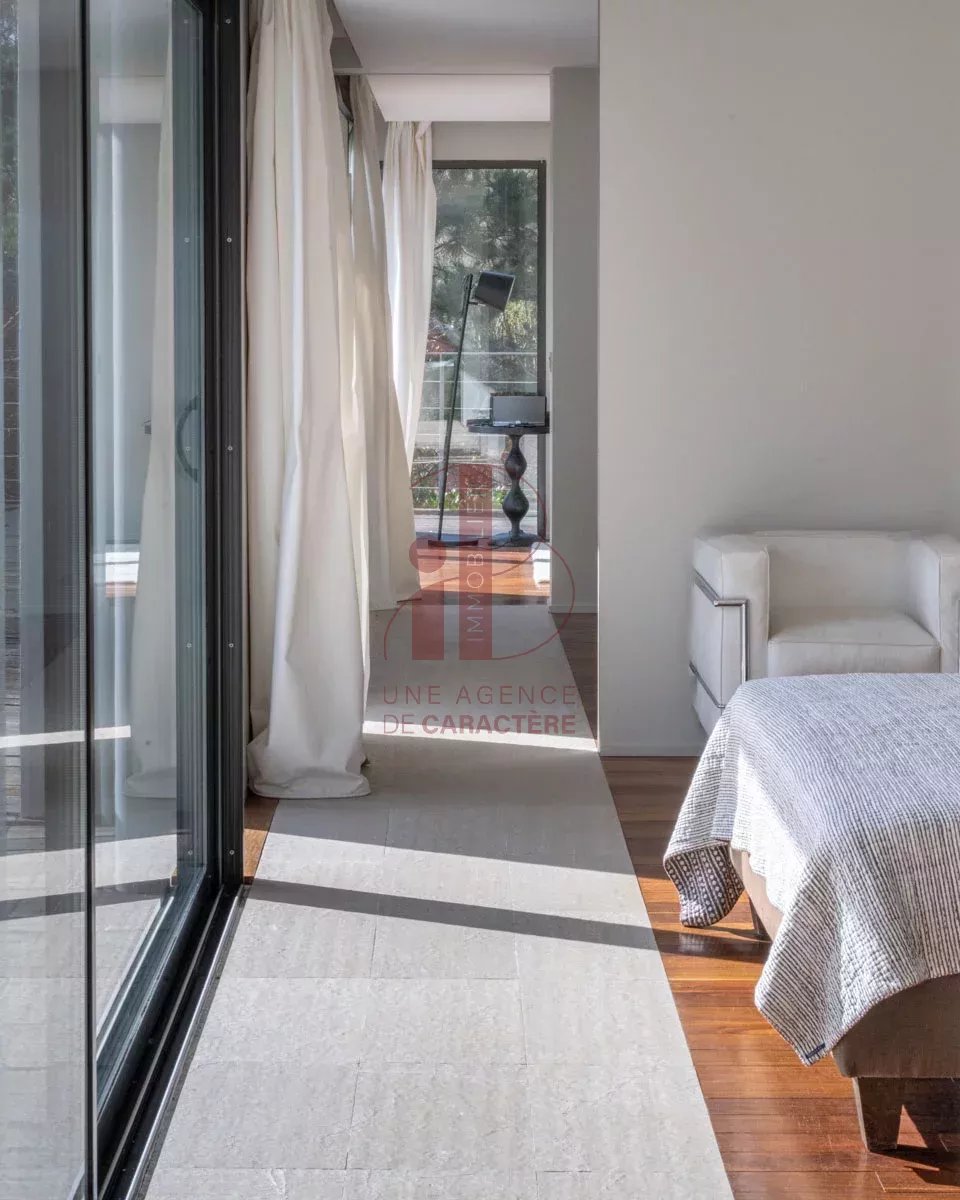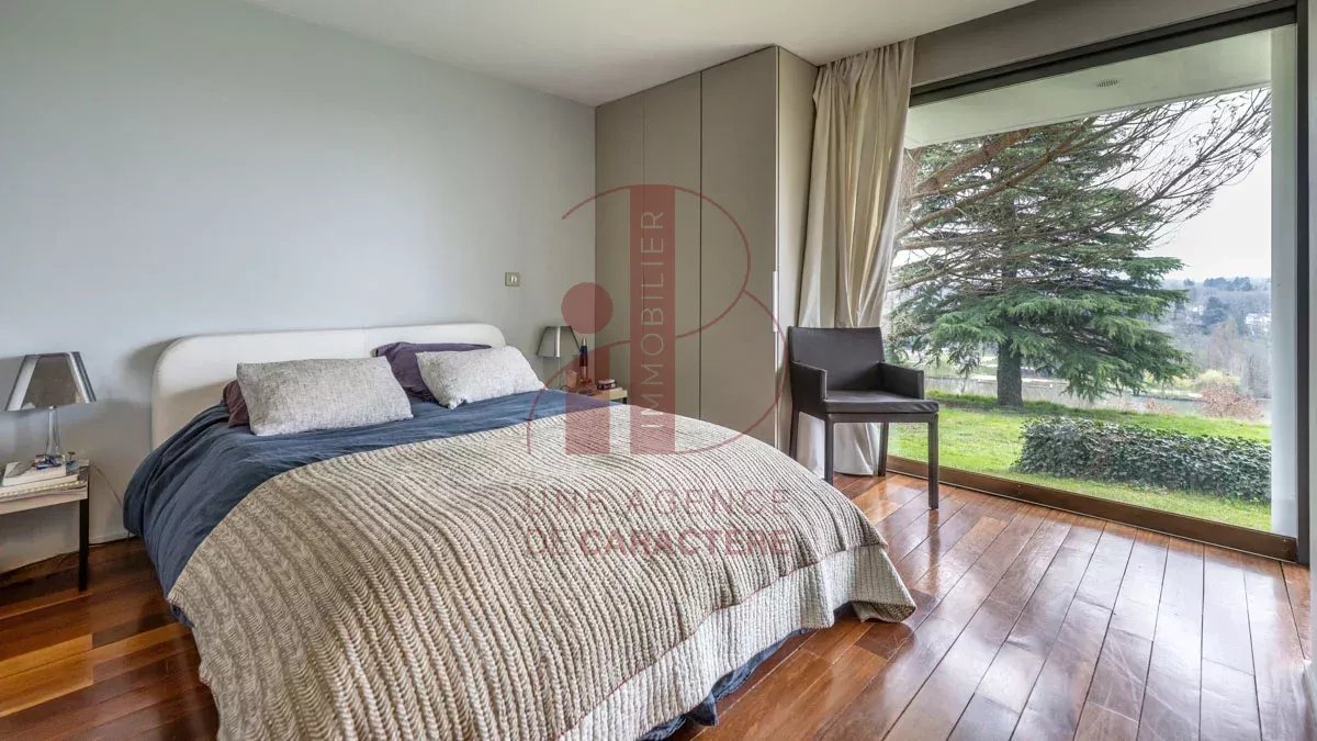 L'espace de vie principal s'ouvre sur un VASTE SEJOUR de 55 m² avec cheminée, et ses larges baies vitrées, prolongé par une terrasse suspendue face à la Seine, une CUISINE OUVERTE avec espace repas, QUATRE CHAMBRES chacune avec sa propre SALLE D'EAU et ses toilettes, dont une avec douche, baignoire et vue panoramique sur la Seine. Un BUREAU lumineux, une BUANDERIE, ainsi qu'un ESPACE BIEN-ETRE en rez-de-jardin avec SALLE DE SPORT, SAUNA, douche, WC, complètent l'ensemble. Chaque niveau profite de nombreuses ouvertures sur l'extérieur.