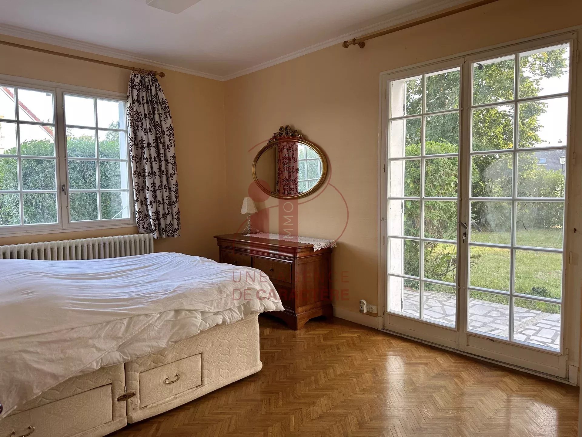 Du côté nuit, la SUITE PARENTALE de 16m² des plus agréables, comprend une CHAMBRE avec point d'eau, offrant une vue imprenable sur le jardin.